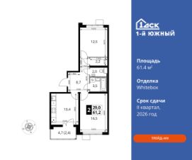 Максимальные скидки при 100% оплате.Trade-in вместо первоначального взноса - выгодно обменяйте вашу квартиру на новую!Прямая продажа от застройщика! Жилой Комплекс класса Комфорт плюс.Продаётся 2-к квартира номер 533 общей площадью 61.4 кв.м на 23-м этаже 24 этажного дома. Отделка Whitebox.Особенности:- Квартира доступна к покупке в Trade-In.- Распашная планировка - отличное сочетание удобства и свободы.- Раздельный санузел- Линейная кухня - функциональность и практичность в одном решении.- Просторная кухня - место для семейных ужинов и кулинарных экспериментов.- Гардеробная - удобство для хранения и организации вещей.- Лоджия - уютное место для отдыха и тишины.- Вид из окна: двор- Вид из окна: улица- МЦД5 в пешей доступности- Квартал с южным садом- Свои 3 детских сада и 2 большие школыКвартира с предчистовой отделкой (White box). Вам не придётся заниматься черновыми трудоёмкими работами, а чистовую отделку и дизайн сделаете по своему вкусу.Расположение комплекса: Одно из преимуществ проектов 1- ДСК - большие застекленные лоджии. Другое преимущество - честный евро-формат. Во всем проекте предусмотрена система ''Умный дом''. В состав устанавливаемого пакета устройств входит: WiFi реле для управления группами потребителей, беспроводной кран перекрытия с эл. приводом, беспроводной сенсор протечки, Яндекс Станция Мини.Его расположение можно назвать удачным за счет транспортной доступности и близости к природным объектам. По соседству лес, а в каждом дворе плодовые деревья. Весной квартал окутывает бело-розовое облако: это цветут яблони, груши, сливы. К августу в воздух наполняется ароматом созревших плодов. Зимой среди покрытых инеем деревьев протянулась лыжня.Транспортная доступность:- Общественный транспорт: Действующая ж/д станция Булатниково (в перспективе будущая МДЦ D5) в пешей доступности, всего 10-12 минут.- Личный автотранспорт:Удобный выезд на трассу М4-Дон в сторону Москвы и области - 850 м, до МКАД - 1 кмВнутренняя инфраструктура:Красивые продуманные подъезды - еще одно преимущество проекта 1-й Южный. Вход в сквозные подъезды есть и с улицы, и со двора. Благодаря сплошному остеклению в них всегда светло и уютно. Подъезды расположены на уровне земли, поэтому и молодым родителям с коляской, и жильцам с ограниченными возможностями вход и выход неудобств не доставят.В помещении предусмотрено место под стойку ресепшен с выводом инженерных сетей. Если жильцы решат на общем собрании, что необходим охранник или консьерж, организовать для них рабочее место можно быстро и с минимальными затратами. В подъездах предусмотрены уборные для детей и взрослых. Колясочные в каждом подъезде позволяют поддерживать порядок и чистоту на этажах. На случай прогулки с четвероногим питомцем в непогоду в подъездах устроены лапомойки. Во дворах и на общественных территориях 1-ого Южного столько всего интересного для юных обитателей. Собственные 3 детских сада и 2 больших школы буквально ''под окнами''Изюминка проекта - пешеходный бульва