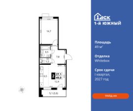 Максимальные скидки при 100% оплате.Trade-in вместо первоначального взноса - выгодно обменяйте вашу квартиру на новую!Прямая продажа от застройщика! Жилой Комплекс класса Комфорт плюс.Продаётся 2-к квартира номер 598 общей площадью 49 кв.м на 11-м этаже 24 этажного дома. Отделка Whitebox.Особенности:- Квартира доступна к покупке в Trade-In.- Распашная планировка - отличное сочетание удобства и свободы.- Раздельный санузел- Можно оборудовать рабочее место - комфорт для работы и учёбы.- Евроформат - просторное и удобное жилье с отличной планировкой.- Линейная кухня - функциональность и практичность в одном решении.- Стандартное количество квартир на этаже - оптимальный выбор для городской жизни.- Просторная лоджия - идеальное место для уютных вечеров.- Вид из окна: двор- Вид из окна: улица- МЦД5 в пешей доступности- Квартал с южным садом- Свои 3 детских сада и 2 большие школыКвартира с предчистовой отделкой (White box). Вам не придётся заниматься черновыми трудоёмкими работами, а чистовую отделку и дизайн сделаете по своему вкусу.Расположение комплекса: Одно из преимуществ проектов 1- ДСК - большие застекленные лоджии. Другое преимущество - честный евро-формат. Во всем проекте предусмотрена система ''Умный дом''. В состав устанавливаемого пакета устройств входит: WiFi реле для управления группами потребителей, беспроводной кран перекрытия с эл. приводом, беспроводной сенсор протечки, Яндекс Станция Мини.Его расположение можно назвать удачным за счет транспортной доступности и близости к природным объектам. По соседству лес, а в каждом дворе плодовые деревья. Весной квартал окутывает бело-розовое облако: это цветут яблони, груши, сливы. К августу в воздух наполняется ароматом созревших плодов. Зимой среди покрытых инеем деревьев протянулась лыжня.Транспортная доступность:- Общественный транспорт: Действующая ж/д станция Булатниково (в перспективе будущая МДЦ D5) в пешей доступности, всего 10-12 минут.- Личный автотранспорт:Удобный выезд на трассу М4-Дон в сторону Москвы и области - 850 м, до МКАД - 1 кмВнутренняя инфраструктура:Красивые продуманные подъезды - еще одно преимущество проекта 1-й Южный. Вход в сквозные подъезды есть и с улицы, и со двора. Благодаря сплошному остеклению в них всегда светло и уютно. Подъезды расположены на уровне земли, поэтому и молодым родителям с коляской, и жильцам с ограниченными возможностями вход и выход неудобств не доставят.В помещении предусмотрено место под стойку ресепшен с выводом инженерных сетей. Если жильцы решат на общем собрании, что необходим охранник или консьерж, организовать для них рабочее место можно быстро и с минимальными затратами. В подъездах предусмотрены уборные для детей и взрослых. Колясочные в каждом подъезде позволяют поддерживать порядок и чистоту на этажах. На случай прогулки с четвероногим питомцем в непогоду в подъездах устроены лапомойки. Во дворах и на общественных территориях 1-ого Южного столько всего интересного для юных обитателей. Собственные 3