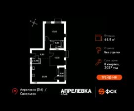 Прямая продажа от застройщика! Загородный жилой комплекс класса Комфорт Плюс.Продаётся 3-к квартира номер 88 общей площадью 68.8 кв.м на 5-м этаже 5 этажного дома. Без отделки.Особенности:- Квартира доступна к покупке в Trade-In.- Угловая планировка - больше пространства для ваших идей.- Увеличенное число окон- Раздельный санузел- Гибкая планировка - создайте пространство по своему вкусу.- Евроформат - просторное и удобное жилье с отличной планировкой.- Просторная мягкая зона - комфорт и уют для отдыха всей семьи.- Стандартное количество квартир на этаже - оптимальный выбор для городской жизни.- Лоджия - уютное место для отдыха и тишины.- Вид из окна на соседний корпус- Вид из окна: улицаКвартира без отделки. Чистый холст для воплощения интерьера вашей мечты.Расположение комплекса: ''Апрелевка Клаб'' - это жилой комплекс всего в 30 км от Москвы по Киевскому шоссе, где городские удобства гармонично сочетаются с природой. Здесь начинается новая ступень жизни: современная малоэтажная застройка не нарушает живописные виды, а закрытая территория дарит чувство безопасности.Транспортная доступность:- Метро Филатов Луг и Рассказовка - 25 км- МЦД Апрелевка - 5 км - МКАД — 30 км- Садовое кольцо — 45 км- Метро в Троицке (открытие в 2030) — 22 км- Ближайшая остановка общ. транспорта ''Фрунзевец'' - 550 м- Ст. м. ''Саларьево'' - 30 мин. на автобусеВнутренняя инфраструктура:Здесь есть хобби на любой вкус, возраст и сезон. Велосипедные, беговые и прогулочные маршруты, уличный workout, летний амфитеатр, спортивная площадка, центральная площадь с сухим фонтаном и игровыми зонами. Крытые развлечения: зона коворкинга, детская комната, кафе.В жилом комплексе будет современная школа на 830 мест и детский сад на 400 мест нового формата: с просторными классами и современным оснащением согласно высоким стандартам. Также на территории будет размещена школа искусств.Дворы без машин, игровые зоны и маршруты для прогулок с навигацией минимизируют риски и создают ощущение защищенности.Вдоль южной границы комплекса протекает река Десна, создавая зону отдыха в природном окружении. Цены указаны с учетом скидки.