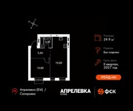 Прямая продажа от застройщика! Загородный жилой комплекс класса Комфорт Плюс.Продаётся 2-к квартира номер 64 общей площадью 39.9 кв.м на 5-м этаже 5 этажного дома. Без отделки.Особенности:- Квартира доступна к покупке в Trade-In.- Линейная планировка - максимальная функциональность и удобство.- Увеличенное число окон- Гибкая планировка - создайте пространство по своему вкусу.- Евроформат - просторное и удобное жилье с отличной планировкой.- Просторная мягкая зона - комфорт и уют для отдыха всей семьи.- Стандартное количество квартир на этаже - оптимальный выбор для городской жизни.- Вид из окна: дворКвартира без отделки. Чистый холст для воплощения интерьера вашей мечты.Расположение комплекса: ''Апрелевка Клаб'' - это жилой комплекс всего в 30 км от Москвы по Киевскому шоссе, где городские удобства гармонично сочетаются с природой. Здесь начинается новая ступень жизни: современная малоэтажная застройка не нарушает живописные виды, а закрытая территория дарит чувство безопасности.Транспортная доступность:- Метро Филатов Луг и Рассказовка - 25 км- МЦД Апрелевка - 5 км - МКАД — 30 км- Садовое кольцо — 45 км- Метро в Троицке (открытие в 2030) — 22 км- Ближайшая остановка общ. транспорта ''Фрунзевец'' - 550 м- Ст. м. ''Саларьево'' - 30 мин. на автобусеВнутренняя инфраструктура:Здесь есть хобби на любой вкус, возраст и сезон. Велосипедные, беговые и прогулочные маршруты, уличный workout, летний амфитеатр, спортивная площадка, центральная площадь с сухим фонтаном и игровыми зонами. Крытые развлечения: зона коворкинга, детская комната, кафе.В жилом комплексе будет современная школа на 830 мест и детский сад на 400 мест нового формата: с просторными классами и современным оснащением согласно высоким стандартам. Также на территории будет размещена школа искусств.Дворы без машин, игровые зоны и маршруты для прогулок с навигацией минимизируют риски и создают ощущение защищенности.Вдоль южной границы комплекса протекает река Десна, создавая зону отдыха в природном окружении. Цены указаны с учетом скидки.