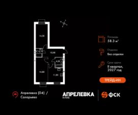 Прямая продажа от застройщика! Загородный жилой комплекс класса Комфорт Плюс.Продаётся 2-к квартира номер 140 общей площадью 58.3 кв.м на 2-м этаже 5 этажного дома. Без отделки.Особенности:- Квартира доступна к покупке в Trade-In.- Распашная планировка - отличное сочетание удобства и свободы.- Раздельный санузел- Гибкая планировка - создайте пространство по своему вкусу.- Стандартное количество квартир на этаже - оптимальный выбор для городской жизни.- Вид из окна: двор- Вид из окна на бульварКвартира без отделки. Чистый холст для воплощения интерьера вашей мечты.Расположение комплекса: ''Апрелевка Клаб'' - это жилой комплекс всего в 30 км от Москвы по Киевскому шоссе, где городские удобства гармонично сочетаются с природой. Здесь начинается новая ступень жизни: современная малоэтажная застройка не нарушает живописные виды, а закрытая территория дарит чувство безопасности.Транспортная доступность:- Метро Филатов Луг и Рассказовка - 25 км- МЦД Апрелевка - 5 км - МКАД — 30 км- Садовое кольцо — 45 км- Метро в Троицке (открытие в 2030) — 22 км- Ближайшая остановка общ. транспорта ''Фрунзевец'' - 550 м- Ст. м. ''Саларьево'' - 30 мин. на автобусеВнутренняя инфраструктура:Здесь есть хобби на любой вкус, возраст и сезон. Велосипедные, беговые и прогулочные маршруты, уличный workout, летний амфитеатр, спортивная площадка, центральная площадь с сухим фонтаном и игровыми зонами. Крытые развлечения: зона коворкинга, детская комната, кафе.В жилом комплексе будет современная школа на 830 мест и детский сад на 400 мест нового формата: с просторными классами и современным оснащением согласно высоким стандартам. Также на территории будет размещена школа искусств.Дворы без машин, игровые зоны и маршруты для прогулок с навигацией минимизируют риски и создают ощущение защищенности.Вдоль южной границы комплекса протекает река Десна, создавая зону отдыха в природном окружении. Цены указаны с учетом скидки.
