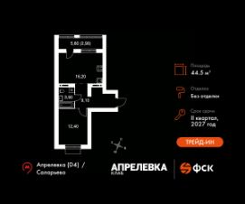 Прямая продажа от застройщика! Загородный жилой комплекс класса Комфорт Плюс.Продаётся 2-к квартира номер 213 общей площадью 44.5 кв.м на 5-м этаже 5 этажного дома. Без отделки.Особенности:- Квартира доступна к покупке в Trade-In.- Распашная планировка - отличное сочетание удобства и свободы.- Увеличенное число окон- Гибкая планировка - создайте пространство по своему вкусу.- Евроформат - просторное и удобное жилье с отличной планировкой.- Ограниченное количество квартир на этаже - комфорт и уют без лишней суеты.- Ниша под шкаф - компактное и удобное место для вещей.- Лоджия - уютное место для отдыха и тишины.- Вид из окна: двор- Вид из окна: парковкаКвартира без отделки. Чистый холст для воплощения интерьера вашей мечты.Расположение комплекса: ''Апрелевка Клаб'' - это жилой комплекс всего в 30 км от Москвы по Киевскому шоссе, где городские удобства гармонично сочетаются с природой. Здесь начинается новая ступень жизни: современная малоэтажная застройка не нарушает живописные виды, а закрытая территория дарит чувство безопасности.Транспортная доступность:- Метро Филатов Луг и Рассказовка - 25 км- МЦД Апрелевка - 5 км - МКАД — 30 км- Садовое кольцо — 45 км- Метро в Троицке (открытие в 2030) — 22 км- Ближайшая остановка общ. транспорта ''Фрунзевец'' - 550 м- Ст. м. ''Саларьево'' - 30 мин. на автобусеВнутренняя инфраструктура:Здесь есть хобби на любой вкус, возраст и сезон. Велосипедные, беговые и прогулочные маршруты, уличный workout, летний амфитеатр, спортивная площадка, центральная площадь с сухим фонтаном и игровыми зонами. Крытые развлечения: зона коворкинга, детская комната, кафе.В жилом комплексе будет современная школа на 830 мест и детский сад на 400 мест нового формата: с просторными классами и современным оснащением согласно высоким стандартам. Также на территории будет размещена школа искусств.Дворы без машин, игровые зоны и маршруты для прогулок с навигацией минимизируют риски и создают ощущение защищенности.Вдоль южной границы комплекса протекает река Десна, создавая зону отдыха в природном окружении. Цены указаны с учетом скидки.