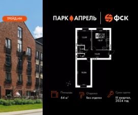 Корпус сдан! Прямая продажа от застройщика! Загородный жилой комплекс класса Комфорт Плюс.Продаётся 2-к квартира номер 69 в сданном корпусе общей площадью 64 кв.м на 3-м этаже 4 этажного дома.Особенности:- Квартира доступна к покупке в Trade-In.- МЦД-4 в 10-ти минутах- Квартиры с ключами- Квартиры в готовом поселке- Отличный вариант для проживания или инвестиций. Поселок готов к проживанию. Посмотрите вживую!- Закрытый поселок в окружении леса- Детский сад и школа на территории- Закрытая территория- Въезд и выезд только через КПП- Круглосуточная охрана и видеонаблюдение- Реки и леса в пешей доступностиРасположение комплекса: Уникальный жилой комплекс, расположенный в 20 минутах от Москвы по Киевскому шоссе и окруженный первозданным лесом. В Парк Апрель легко наслаждаться жизнью на природе, не отказываясь от привычного уровня комфорта. Это возможно, благодаря уникальному сочетанию преимуществ комплекса. ЖК, окруженный с трех сторон лесом - подарит вам возможность дышать полной грудью и наслаждаться прекрасными видами, а развитая инфраструктура, транспортная доступность и высокий уровень безопасности принесут спокойствие и безмятежность.Транспортная доступность:МКАД в 20 минутах по Киевскому шоссе по современной скоростной трассе. Автобусная остановка в 200-х метрах от дома. 9 маршрутов наземного транспорта, автобусы до станций метро Юго-Западная, Саларьево, Румянцево, Тропарево. 25 минут на МЦД D4 до Киевского вокзала.Внутренняя инфраструктура:Развитая инфраструктура жилого комплекса, включает муниципальную школу, детский сад, торговый центр и другие объекты. Расположение домов тщательно продумано, так что из окон открываются красивые виды на тихие дворики и окружающий лес, а всего за 10 минут на личном или общественном транспорте вы доедете до любой из двадцати школ, поликлиники или современного дворца спорта. Разумеется, в Апрелевке найдутся также торговые комплексы, фитнес-центры и многое другое. Для кровли используется черепица, имеющая отличные тепло- и шумоизоляционные характеристики. Благодаря стенам из керамических на протяжении всего года в доме будет здоровый микроклимат, а облицовка бельгийский кирпичом придает особое очарование фасадам.Вы сможете создать уникальный формат жилья, который подойдет именно вам. Просторная кухня - гостиная, отдельный кабинет для работы, мастер-спальня с гардеробной и ванной - квартира со свободной планировкой позволяет воплотить в жизнь все ваши идеиС трех сторон Парк Апрель окружен лесом и малоэтажной частной застройкой, поблизости отсутствуют вредные производства. В пешей доступности находятся две реки и лесной массив, откуда удачная роза ветров приносит свежий воздухЖителям Парк Апрель доступна развитая инфраструктура Апрелевки: два десятка образовательных учреждений, спортивная школа, современный дворец спорта, поликлиники, фитнес-центры, магазины и торговые комплексы. Все объекты расположены не более, чем в 10 минутах езды на машине. Цены указаны с учетом скидки.