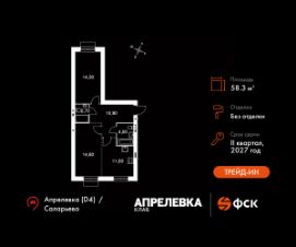 Прямая продажа от застройщика! Загородный жилой комплекс класса Комфорт Плюс.Продаётся 2-к квартира номер 35 общей площадью 58.3 кв.м на 2-м этаже 5 этажного дома. Без отделки.Особенности:- Квартира доступна к покупке в Trade-In.- Распашная планировка - отличное сочетание удобства и свободы.- Раздельный санузел- Душ помимо ванной - дополнительное удобство для вашей семьи.- Можно оборудовать рабочее место - комфорт для работы и учёбы.- Гибкая планировка - создайте пространство по своему вкусу.- Стандартное количество квартир на этаже - оптимальный выбор для городской жизни.- Вид из окна: двор- Вид из окна на соседний корпусКвартира без отделки. Чистый холст для воплощения интерьера вашей мечты.Расположение комплекса: ''Апрелевка Клаб'' - это жилой комплекс всего в 30 км от Москвы по Киевскому шоссе, где городские удобства гармонично сочетаются с природой. Здесь начинается новая ступень жизни: современная малоэтажная застройка не нарушает живописные виды, а закрытая территория дарит чувство безопасности.Транспортная доступность:- Метро Филатов Луг и Рассказовка - 25 км- МЦД Апрелевка - 5 км - МКАД — 30 км- Садовое кольцо — 45 км- Метро в Троицке (открытие в 2030) — 22 км- Ближайшая остановка общ. транспорта ''Фрунзевец'' - 550 м- Ст. м. ''Саларьево'' - 30 мин. на автобусеВнутренняя инфраструктура:Здесь есть хобби на любой вкус, возраст и сезон. Велосипедные, беговые и прогулочные маршруты, уличный workout, летний амфитеатр, спортивная площадка, центральная площадь с сухим фонтаном и игровыми зонами. Крытые развлечения: зона коворкинга, детская комната, кафе.В жилом комплексе будет современная школа на 830 мест и детский сад на 400 мест нового формата: с просторными классами и современным оснащением согласно высоким стандартам. Также на территории будет размещена школа искусств.Дворы без машин, игровые зоны и маршруты для прогулок с навигацией минимизируют риски и создают ощущение защищенности.Вдоль южной границы комплекса протекает река Десна, создавая зону отдыха в природном окружении. Цены указаны с учетом скидки.