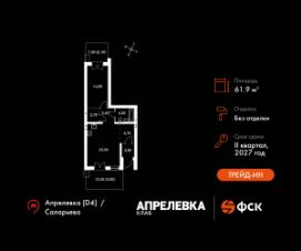 Прямая продажа от застройщика! Загородный жилой комплекс класса Комфорт Плюс.Продаётся 2-к квартира номер 133 общей площадью 61.9 кв.м на 1-м этаже 5 этажного дома. Без отделки.Особенности:- Квартира доступна к покупке в Trade-In.- Распашная планировка - отличное сочетание удобства и свободы.- Окна в пол - панорамный вид и максимальное количество света.- Увеличенное число окон- Гибкая планировка - создайте пространство по своему вкусу.- Евроформат - просторное и удобное жилье с отличной планировкой.- Просторная мягкая зона - комфорт и уют для отдыха всей семьи.- Проходная кухня-гостиная - идеальное пространство для общения и готовки.- Ограниченное количество квартир на этаже - комфорт и уют без лишней суеты.- Гардеробная - удобство для хранения и организации вещей.- Терраса - место для загара и вечерних посиделок.- Вид из окна: двор- Вид из окна на бульварКвартира без отделки. Чистый холст для воплощения интерьера вашей мечты.Расположение комплекса: ''Апрелевка Клаб'' - это жилой комплекс всего в 30 км от Москвы по Киевскому шоссе, где городские удобства гармонично сочетаются с природой. Здесь начинается новая ступень жизни: современная малоэтажная застройка не нарушает живописные виды, а закрытая территория дарит чувство безопасности.Транспортная доступность:- Метро Филатов Луг и Рассказовка - 25 км- МЦД Апрелевка - 5 км - МКАД — 30 км- Садовое кольцо — 45 км- Метро в Троицке (открытие в 2030) — 22 км- Ближайшая остановка общ. транспорта ''Фрунзевец'' - 550 м- Ст. м. ''Саларьево'' - 30 мин. на автобусеВнутренняя инфраструктура:Здесь есть хобби на любой вкус, возраст и сезон. Велосипедные, беговые и прогулочные маршруты, уличный workout, летний амфитеатр, спортивная площадка, центральная площадь с сухим фонтаном и игровыми зонами. Крытые развлечения: зона коворкинга, детская комната, кафе.В жилом комплексе будет современная школа на 830 мест и детский сад на 400 мест нового формата: с просторными классами и современным оснащением согласно высоким стандартам. Также на территории будет размещена школа искусств.Дворы без машин, игровые зоны и маршруты для прогулок с навигацией минимизируют риски и создают ощущение защищенности.Вдоль южной границы комплекса протекает река Десна, создавая зону отдыха в природном окружении. Цены указаны с учетом скидки.
