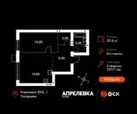 Прямая продажа от застройщика! Загородный жилой комплекс класса Комфорт Плюс.Продаётся 2-к квартира номер 169 общей площадью 50.6 кв.м на 1-м этаже 5 этажного дома. Без отделки.Особенности:- Квартира доступна к покупке в Trade-In.- Линейная планировка - максимальная функциональность и удобство.- Окна в пол - панорамный вид и максимальное количество света.- Гибкая планировка - создайте пространство по своему вкусу.- Евроформат - просторное и удобное жилье с отличной планировкой.- Просторная мягкая зона - комфорт и уют для отдыха всей семьи.- Проходная кухня-гостиная - идеальное пространство для общения и готовки.- Ограниченное количество квартир на этаже - комфорт и уют без лишней суеты.- Кладовая - дополнительное пространство для хранения.- Ниша под шкаф - компактное и удобное место для вещей.- Вид из окна: парковкаКвартира без отделки. Чистый холст для воплощения интерьера вашей мечты.Расположение комплекса: ''Апрелевка Клаб'' - это жилой комплекс всего в 30 км от Москвы по Киевскому шоссе, где городские удобства гармонично сочетаются с природой. Здесь начинается новая ступень жизни: современная малоэтажная застройка не нарушает живописные виды, а закрытая территория дарит чувство безопасности.Транспортная доступность:- Метро Филатов Луг и Рассказовка - 25 км- МЦД Апрелевка - 5 км - МКАД — 30 км- Садовое кольцо — 45 км- Метро в Троицке (открытие в 2030) — 22 км- Ближайшая остановка общ. транспорта ''Фрунзевец'' - 550 м- Ст. м. ''Саларьево'' - 30 мин. на автобусеВнутренняя инфраструктура:Здесь есть хобби на любой вкус, возраст и сезон. Велосипедные, беговые и прогулочные маршруты, уличный workout, летний амфитеатр, спортивная площадка, центральная площадь с сухим фонтаном и игровыми зонами. Крытые развлечения: зона коворкинга, детская комната, кафе.В жилом комплексе будет современная школа на 830 мест и детский сад на 400 мест нового формата: с просторными классами и современным оснащением согласно высоким стандартам. Также на территории будет размещена школа искусств.Дворы без машин, игровые зоны и маршруты для прогулок с навигацией минимизируют риски и создают ощущение защищенности.Вдоль южной границы комплекса протекает река Десна, создавая зону отдыха в природном окружении. Цены указаны с учетом скидки.