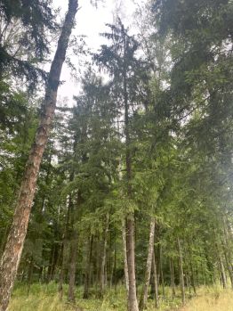 Продаю прекрасный участок с лесными деревьями ,подъезд со стороны дороги просёлочной (круглогодичный подьезд) и заезд из СНТ,стол со счётчиком проплаченным на участке.документы готовы.