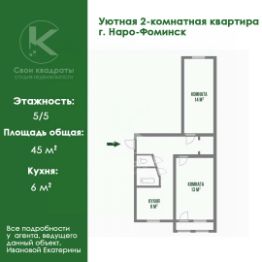 Арт. 114998771 В АРЕНДУ сдаётся просторная светлая 2-комнатная квартира общей площадью 45 кв.м. ЗАСЕЛЕНИЕ ПОСЛЕ 10 СЕНТЯБРЯ! Находится по адресу: г. Наро-Фоминск, улица Латышская,13 В квартире есть вся необходимая мебель и техника для комфортного проживания. В шаговой доступности находятся:- Детский сад- Школа- Детская площадка- Два многофункциональных медицинских центра - Ледовый дворец - Хореографическая школаОкружение: - Тихий и зеленый двор- Бесплатная парковкаИнфраструктура: Вблизи расположены :- Пятерочка - ДИКСИ - Аптека- WILDBERRIES- OZON- Остановка общественного транспорта Оплата: 37.000 руб. + счётчики + 37.000 руб. депозит.Комиссия агентства : 100%. Если вы ищете комфортное жилье для своей семьи для в тихом районе с развитой инфраструктурой — эта квартира именно для вас! Агент Иванова Екатерина была на объекте, и с удовольствием ответит на все ваши вопросы!Предоплата за 1 месяцЗалог 37 000 ₽