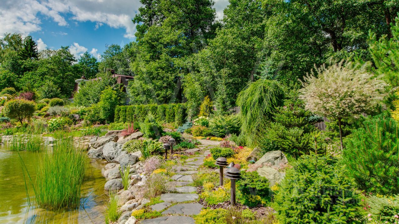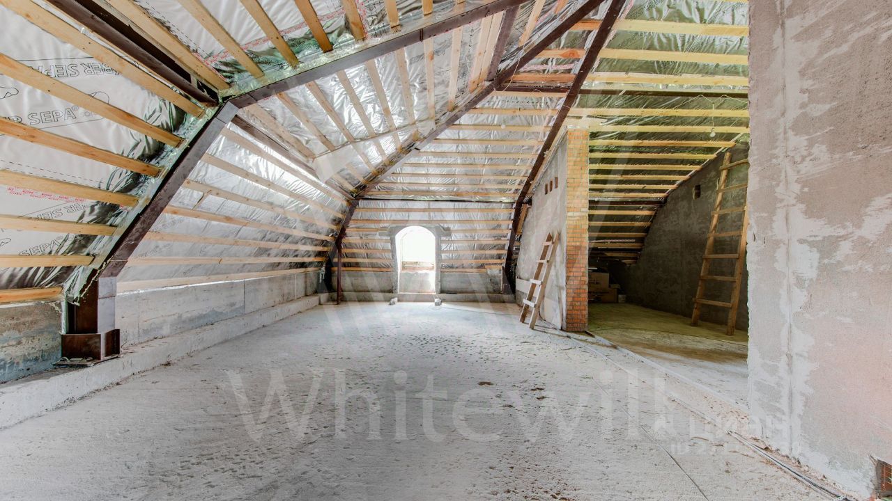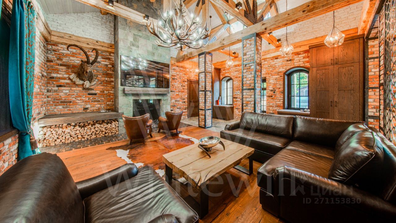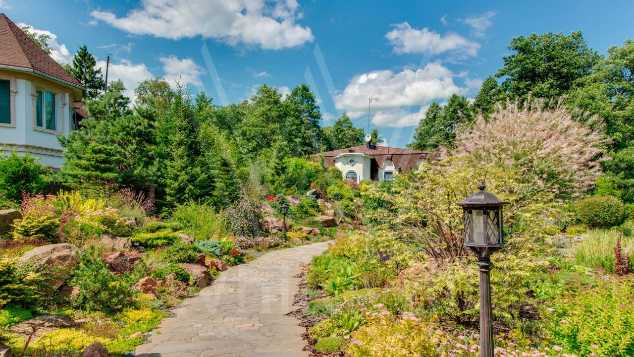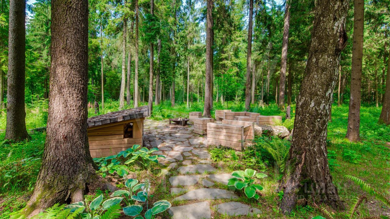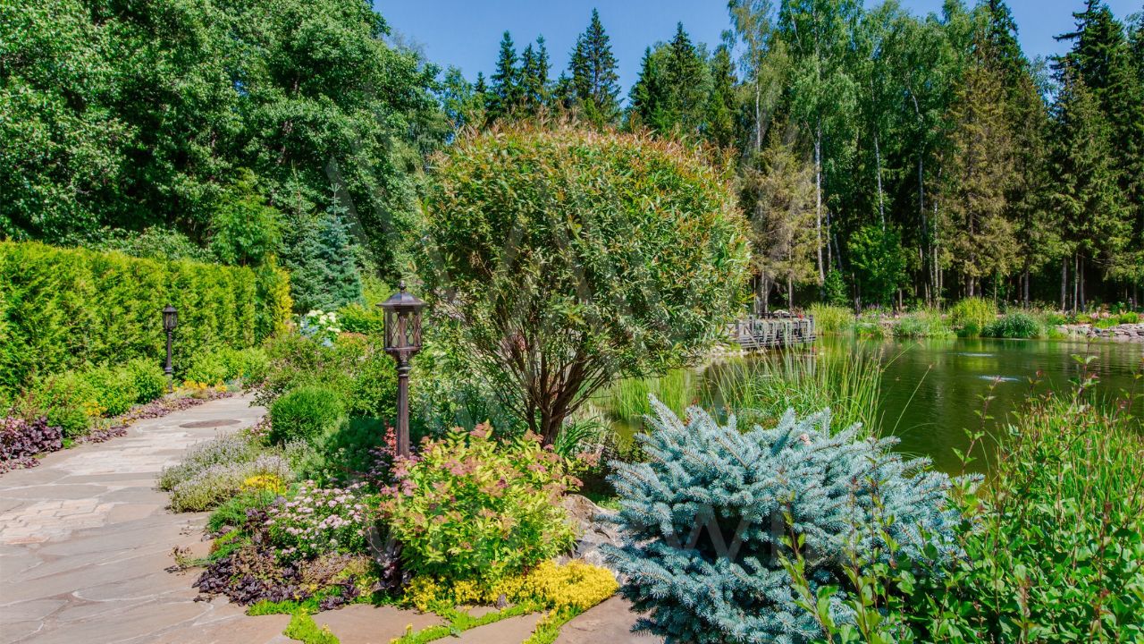 ID 10 069. Глаголево парк. Загородный дом площадью 700 м² без отделки расположен на просторном участке 1 гектар, половину которого занимает вековой сосново-еловый лес. Фасад в в георгианском стиле современной Великобритании выполнен из красного кирпича, украшен рустовкой, карнизами, наличниками, колоннами и коваными элементами. В резиденции спланировали 6 спален, в первый этаж встроен гараж для 2 машин. На территории предусмотрены охотничий дом с сауной и дом для персонала. На участке выполнен ландшафтный дизайн, обустроен искусственный водоем глубиной 3 метра, уличное освещение, выложены дорожки и высажены растения.