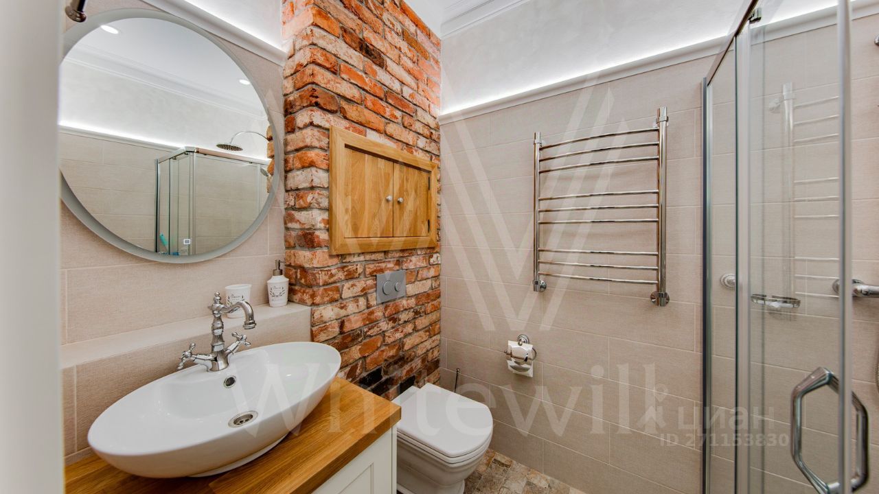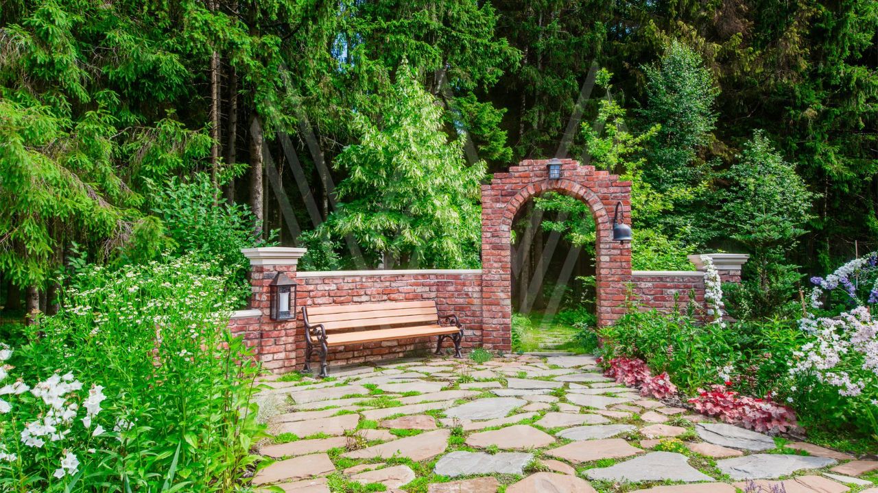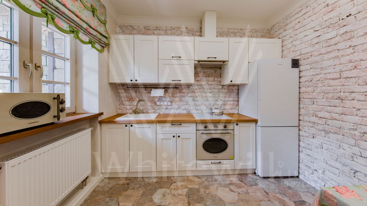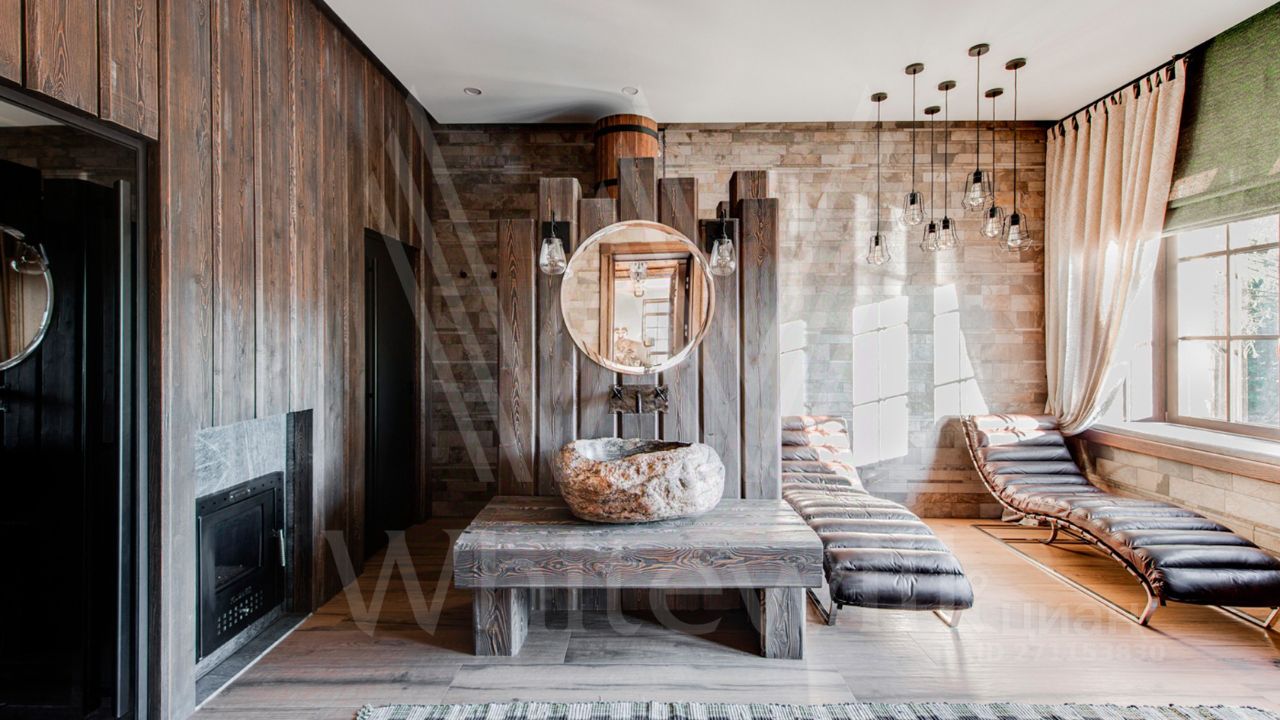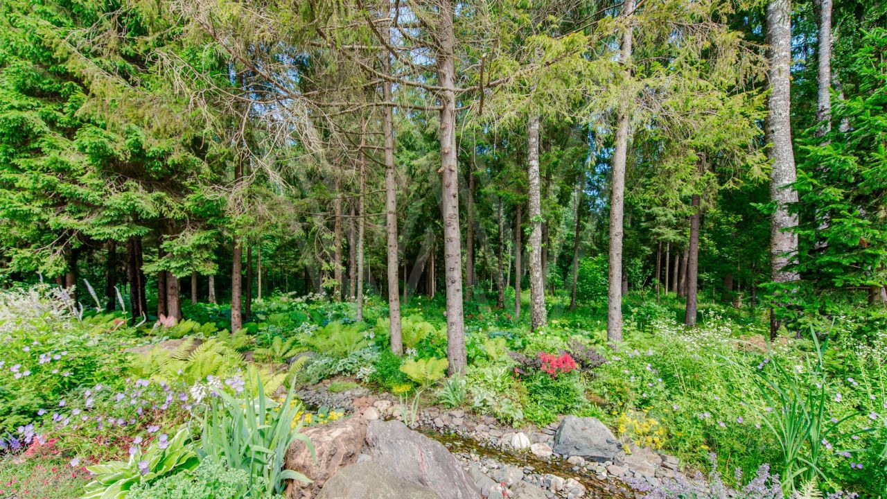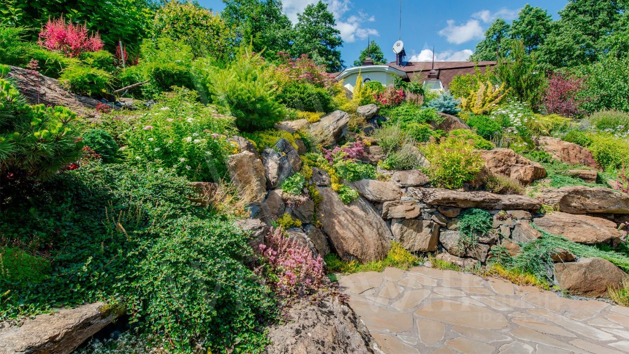 ID 10 069. Глаголево парк. Загородный дом площадью 700 м² без отделки расположен на просторном участке 1 гектар, половину которого занимает вековой сосново-еловый лес. Фасад в в георгианском стиле современной Великобритании выполнен из красного кирпича, украшен рустовкой, карнизами, наличниками, колоннами и коваными элементами. В резиденции спланировали 6 спален, в первый этаж встроен гараж для 2 машин. На территории предусмотрены охотничий дом с сауной и дом для персонала. На участке выполнен ландшафтный дизайн, обустроен искусственный водоем глубиной 3 метра, уличное освещение, выложены дорожки и высажены растения.