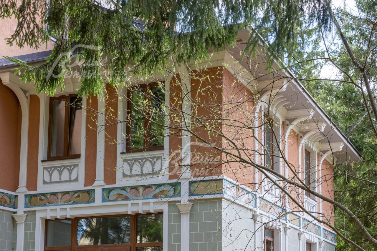 Материал стен: В центральной части дома 55 см кирпич полнотелый, в боковых крыльях пеноблок+кирпич. Облицовка стен: Плитка, мозаика, штукатурка ''короед'', лепнина, декоративные элементы. Цоколь - искусственный камень.