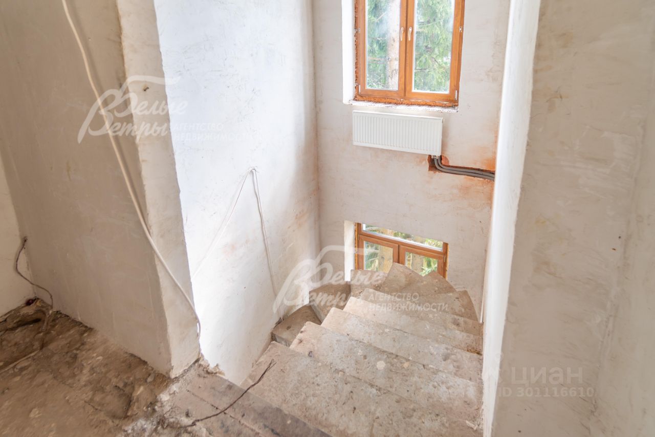 Описание внутренней отделки: возведены межкомнатные стены - черновая штукатурка, установлен котел, разведено отопление, лестничный марш ж/б,.