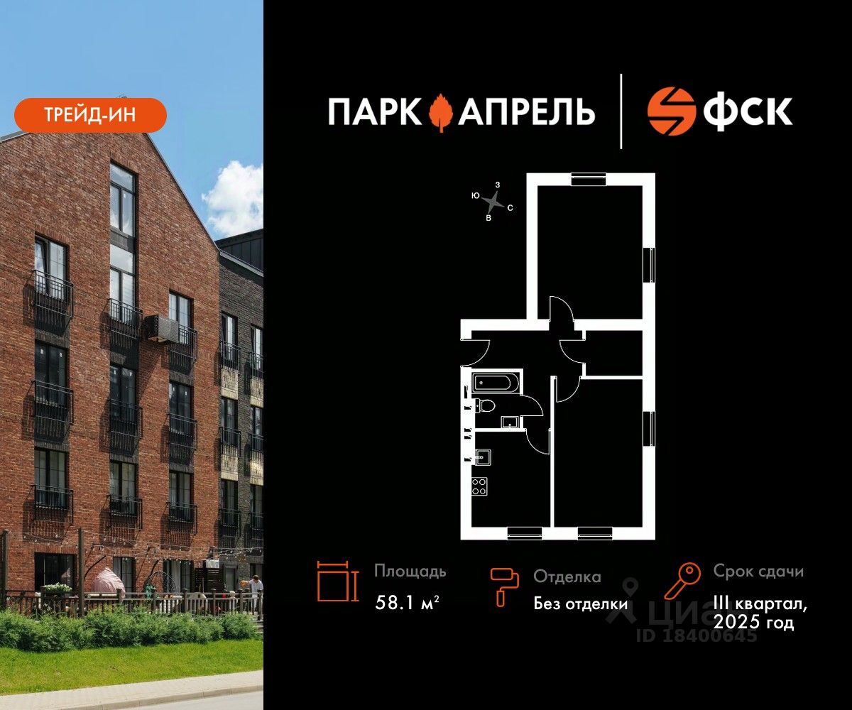продам 2-к, Парк Апрель, 4511 161 010 ₽