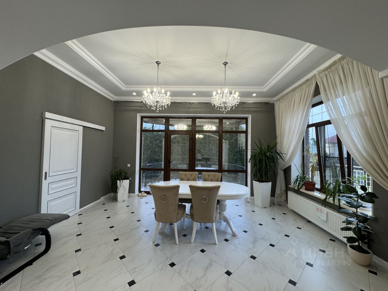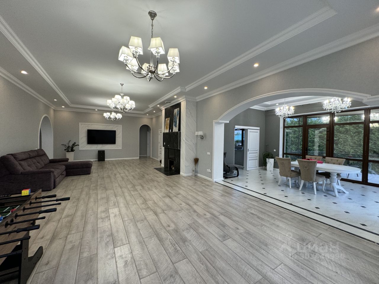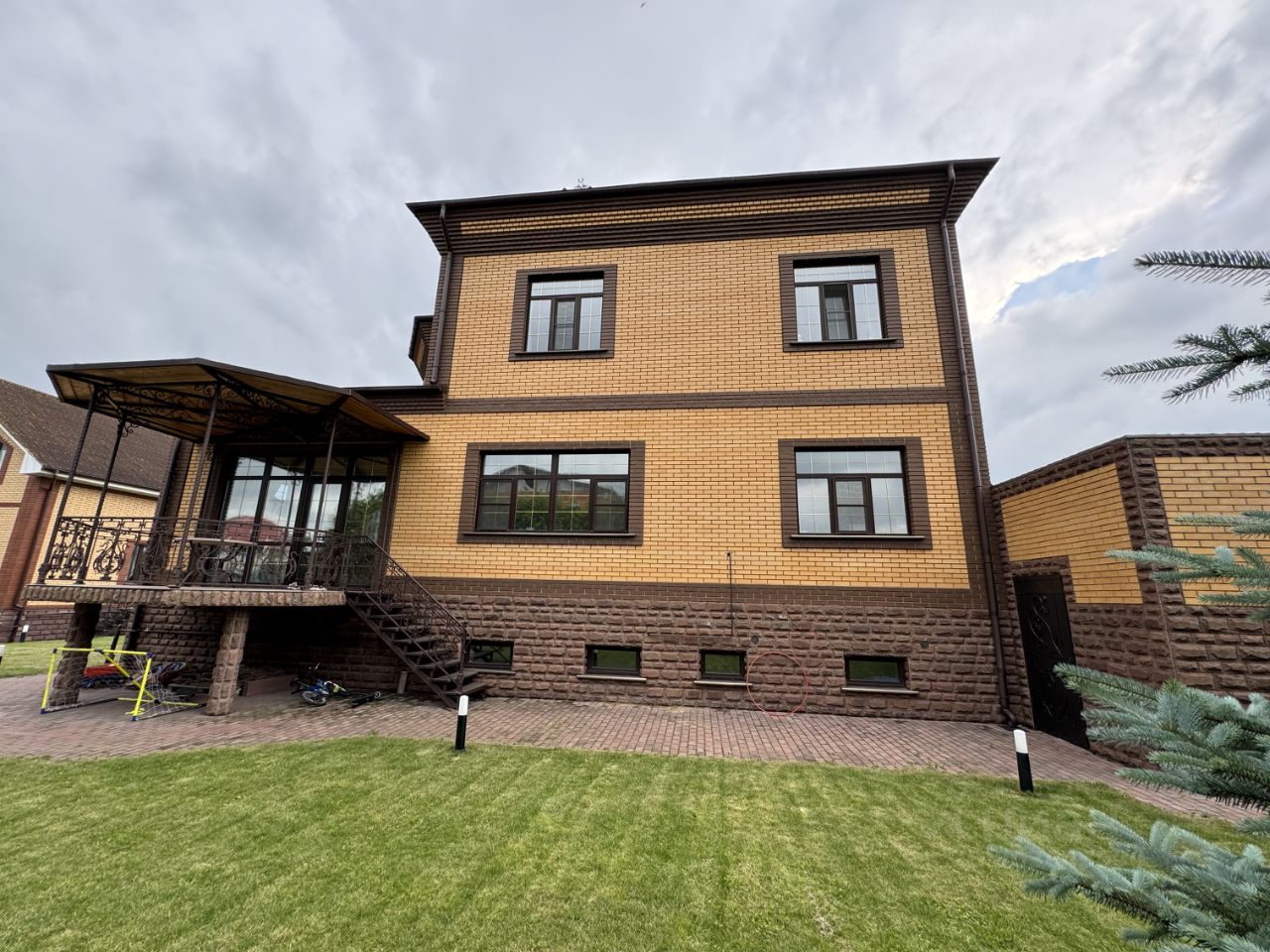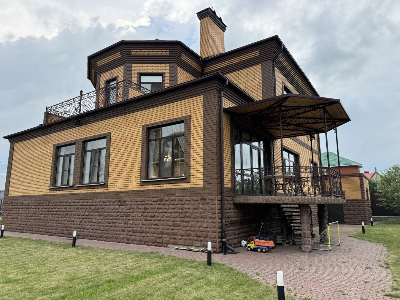 Продается трехэтажный дом площадью 409 м2, с теплым гаражом на 2 машины площадью 46,3 м2, 2014 год постройки, Дом расположен в селе Софьино, Раменского г.о., на земельном участке площадью 1228 м2. Участок ровный, размерами 30х40 метров, огорожен забором по периметру, фасадная часть - дорогой кованный забор. На участке газон, небольшой огород для выращивания овощей и зелени, деревья и кустарники, на дворовой территории тротуарная плитка. Дом построен из кирпича и утеплен пеноплексом 50мм, на потолке 2-х слойный гипсокартон, высота 1 этажа -3,5 м, высота 2 этажа -3 м, теплые полы на 1 этаже, на 2 этаже теплые полы в ванной комнате и туалете, в цокольном этаже теплые полы везде кроме кладовой. 1 Этаж: кухня-столовая с выходом на террасу и переходом в гостиную, гостиная с камином, гостевая спальня, сан.узел с постирочной, гладильная-гардеробная, гостевой с/у, кабинет. 2 Этаж: мастер-спальная комната с выходом на террасу и гардеробной, детская комната, спальная комната, большой сан.узел с ванной и душевой. Цокольный этаж: котельная, кладовая, тренажерный зал, подсобное помещение. Внутренняя отделка полностью закончена, не требует дополнительных вложений. Коммуникации: газ и вода централизованные, электричество 15 кВт (3 фазы), канализация евросептик, двойная система очистки воды, отопление АОГВ, интернет-оптоволоконный кабель. Инфраструктура сельского поселения Софьинское: детский сад, школа, больница, администрация, почта, торговый центр Пятерочка, Магнит, пункт выдачи OZON, Wildberries, остановка автобуса до м. Котельники в шаговой доступности. Один взрослый собственник, без обременений, показ по договоренности.