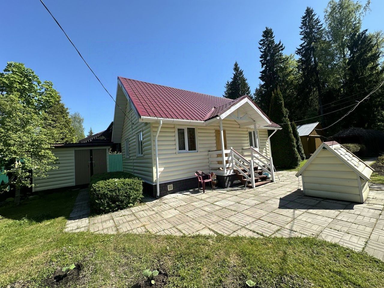 Красивый, ухоженный участок огорожен по периметру из металлопрофиля 6 соток. На участке расположены помимо дома другие строения: баня, летняя кухня, а так же хозблок и беседка, посажены: яблони, груша, чёрная рябина, калина, кусты смородины, туи, декоративный кустарник вдоль дорожек (Барбарис граб), каштан, сирень и цветы (пионы, флоксы).