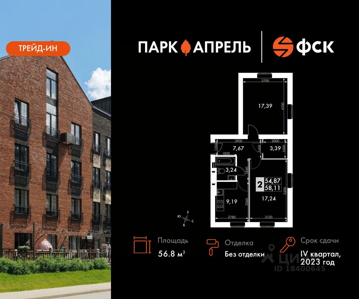 продам 2-к, Парк Апрель, 3913 141 360 ₽