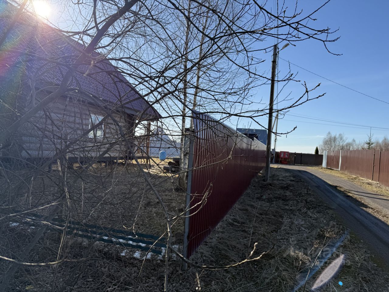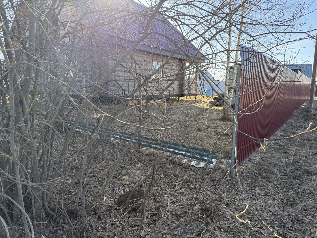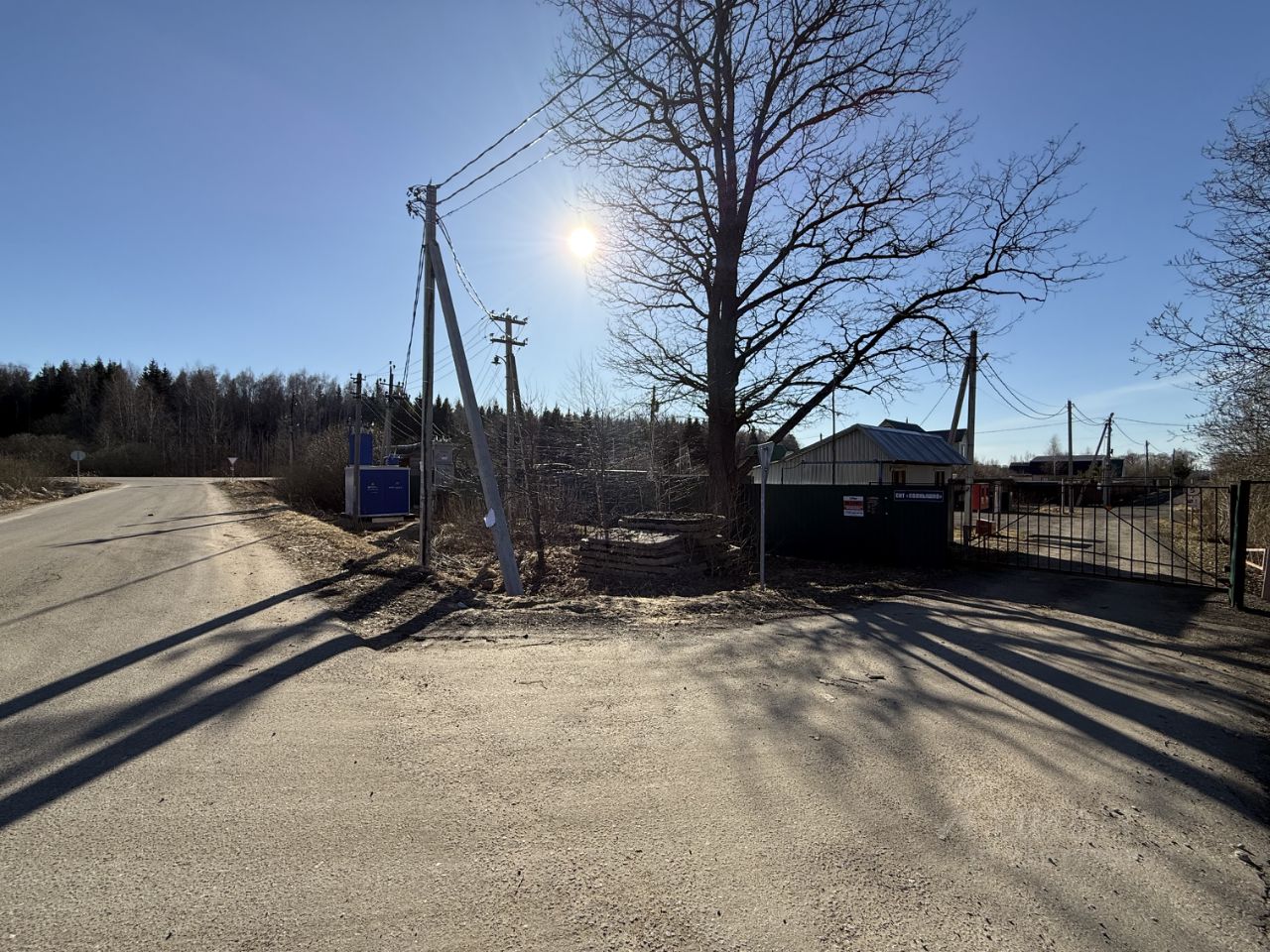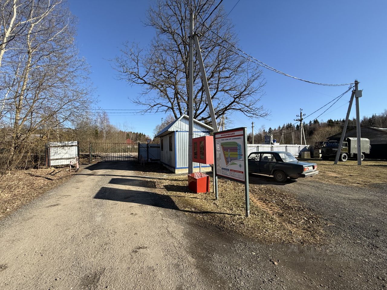 С двух сторон участок огорожен соседями, не обрабатывается. На участке несколко берез и кустарники. Расположен по центральной улице, рядом с прудом. СНТ (небольшое, всего 113 участков) находится рядом с въездом, въезд через ворота (с пультом). Столб с электричеством находится напротив участка (тариф для сельской местности — 5,18 кВт/ч). Уборка снега зимой и вывоз мусора проводятся регулярно.