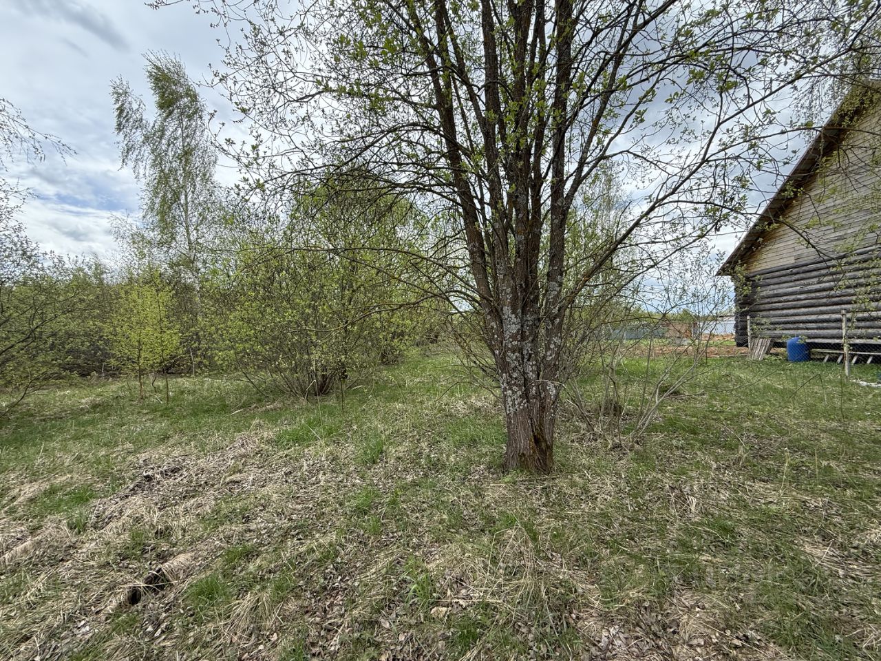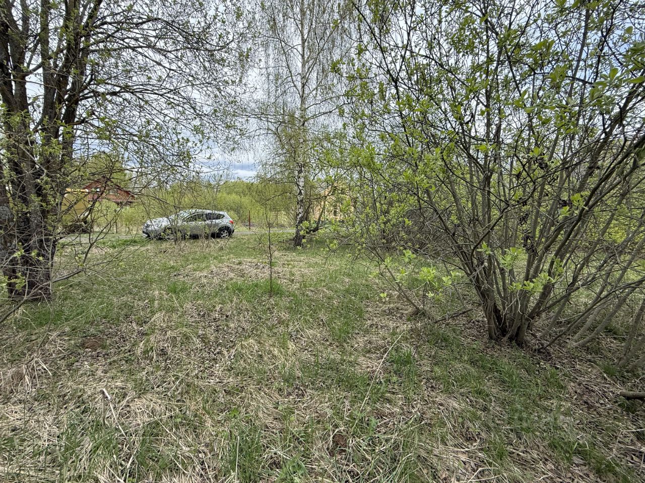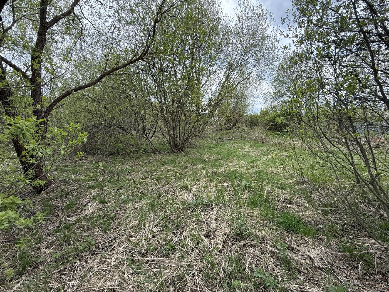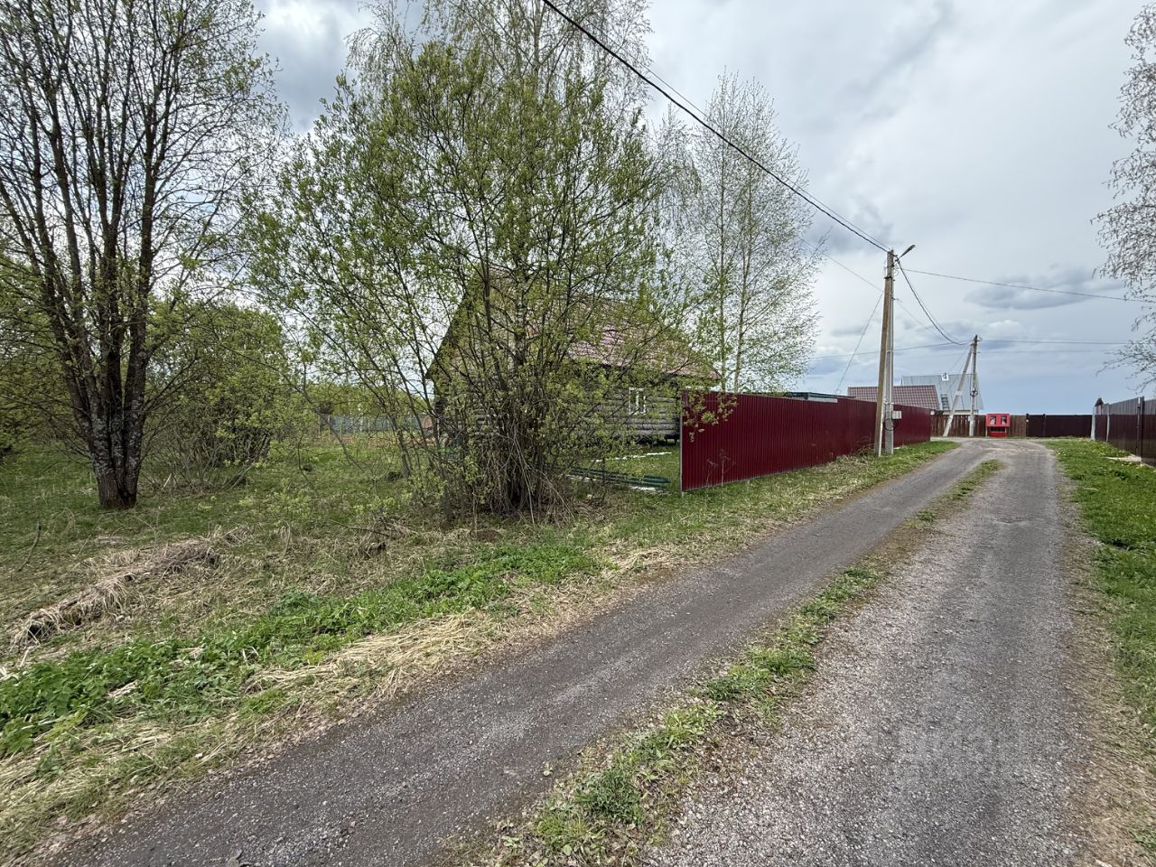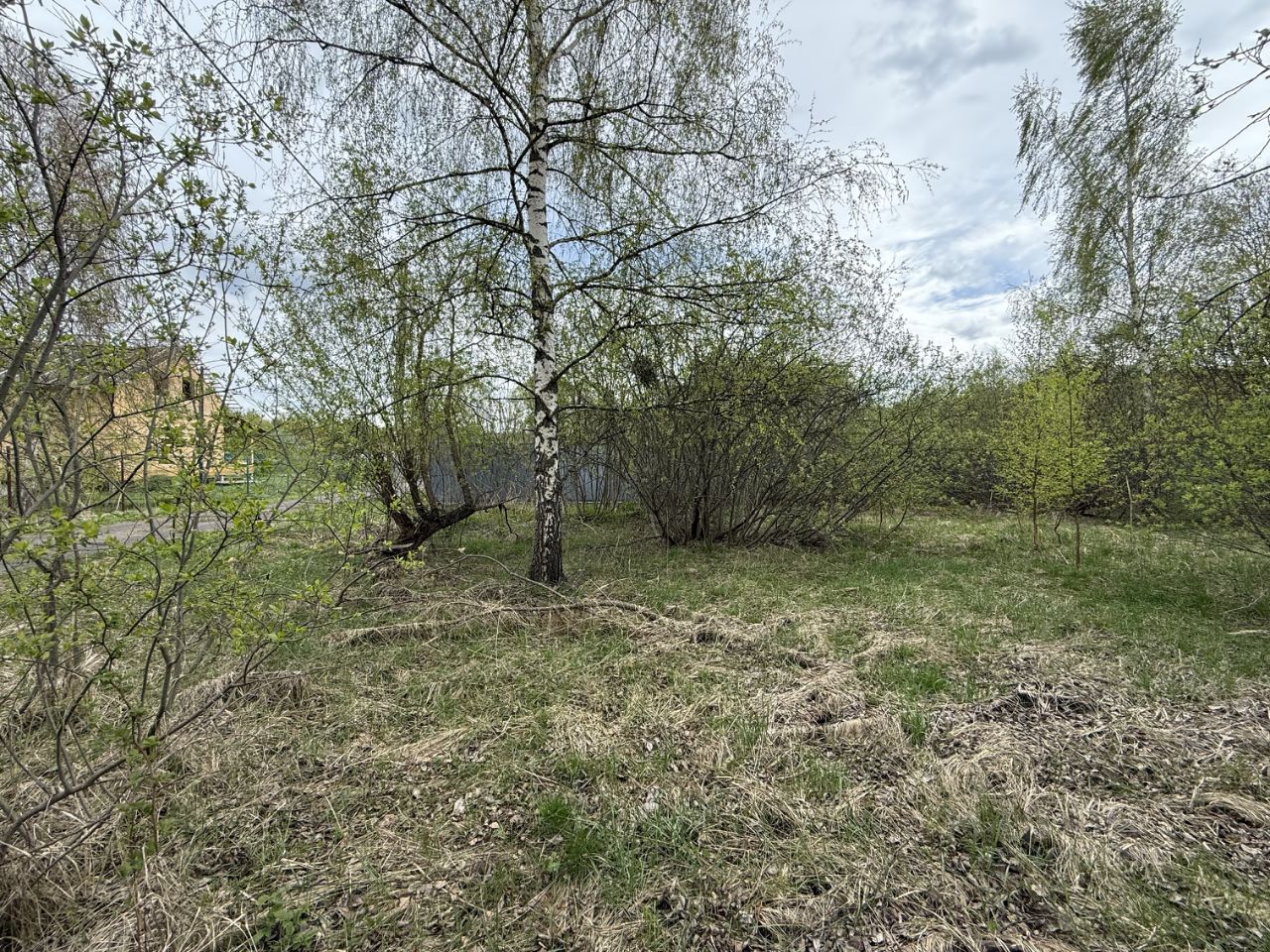 С двух сторон участок огорожен соседями, не обрабатывается. На участке несколко берез и кустарники. Расположен по центральной улице, рядом с прудом.