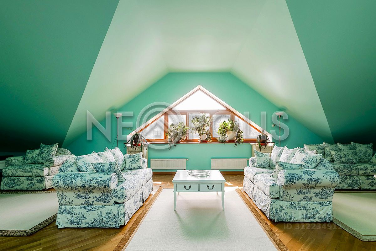 ПЛАНИРОВКА: Цоколь: холл, зона домашнего кинотеатра, тренажерный зал, сезонные гардеробные, кладовые, санузел, постирочная. 1 этаж: прихожая, холл, кухня, столовая с зимним садом, гостиная, кабинет, санузел. 2 этаж: холл, 4 спальни, гардеробная, 3 санузла. Мансарда: большая зона свободного назначения, выведены коммуникации для кухни или бара, есть санузел (можно использовать как зону отдыха с барной стойкой, можно как отдельную зону для персонала с собственной кухней)