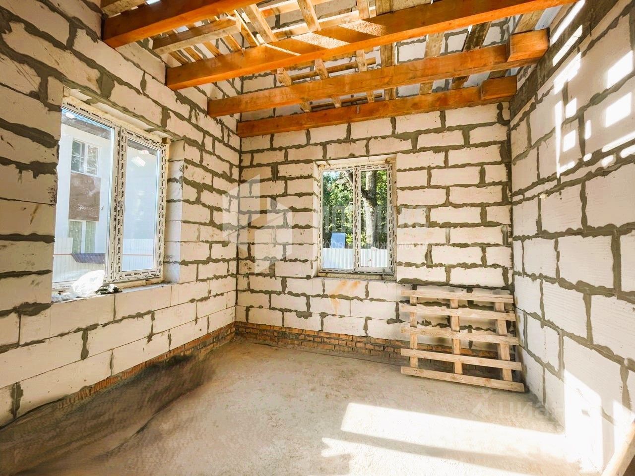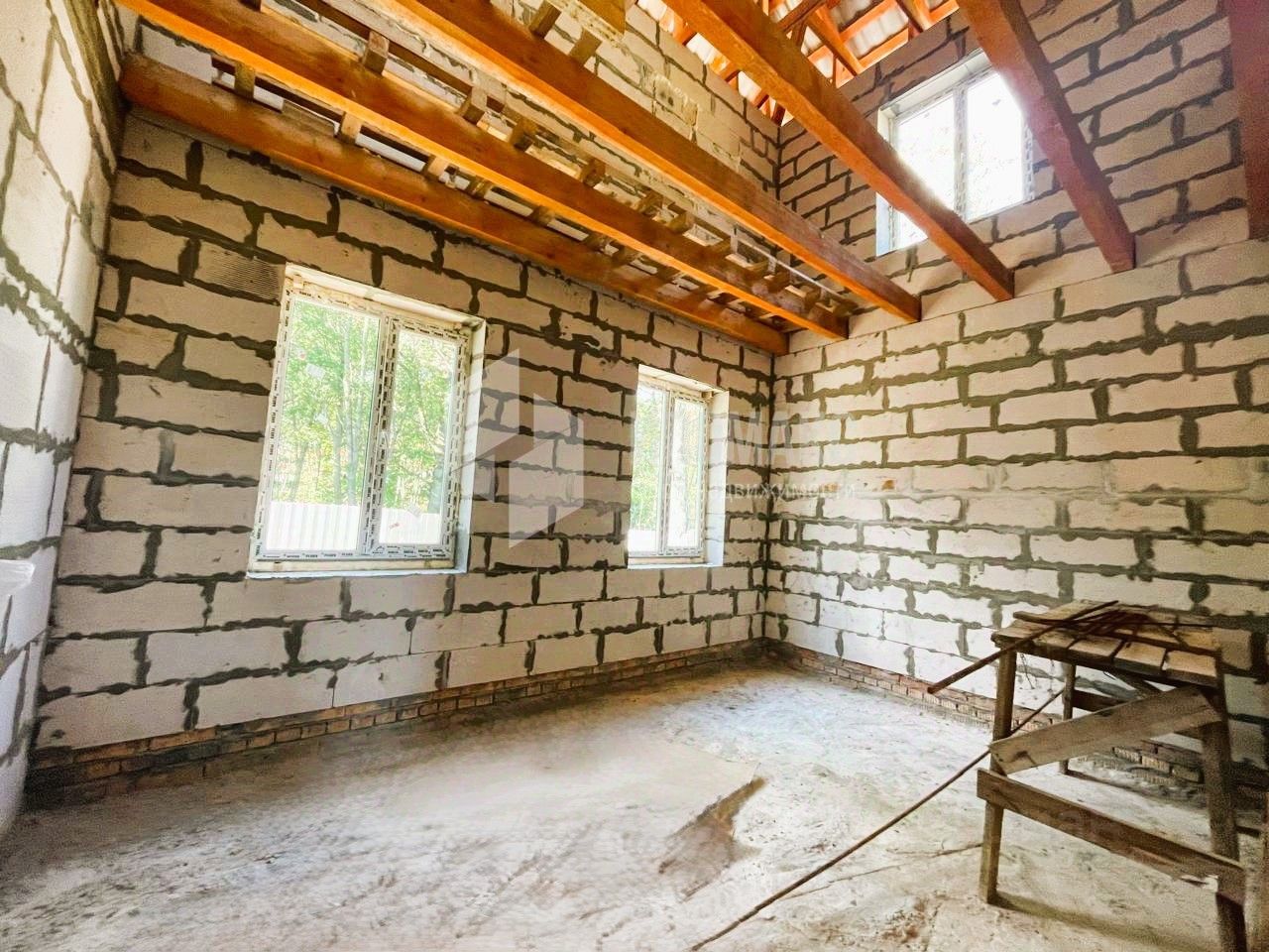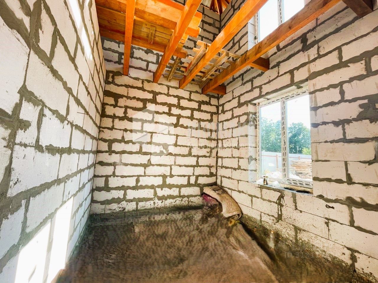 Дом: из пеноблоков , фундамент - лента, крыша из металлочерепицы. Необходима внутренняя отделка. Планировка дома 1 этаж: просторная кухня-гостиная, уютная спальня, санузел, техническое помещение. 2 этаж: мастер-спальня с собственным санузлом и гардеробной комнатой, 3 комнаты и санузел
