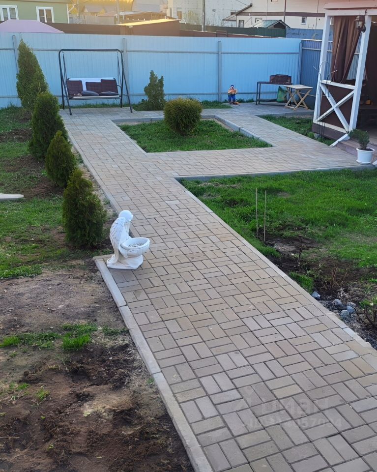 Учacтoк огpaждён зaбopoм со всеx сторон, есть беседка с мангальной зоной. От дома до беседки выложена брусчатка по периметру которой высаженные туи. Имеется парковочное место для 2-х авто. Так же на территории участка расположен вольер для собаки, бытовка и уличный WС На территории участка растут плодовые деревья, есть теплица.