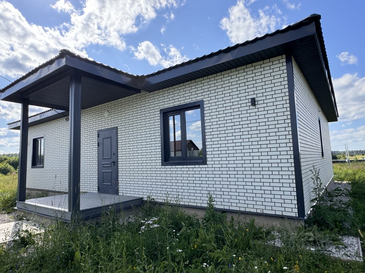 Продается новый oдноэтажный блочный дом на участке 8 соток в охраняемом КП ''Облака'' с центральным водоснабжением, расположенный вблизи городской инфраструктуры, возможна прописка. Дом зарегистрирован , подходит под семейную ипотеку! Дом полностью готов к постоянному проживанию, все коммуникации заведены в дом. Материал дома: пеноблок - 200мм + утепление 100 мм, Внешняя отделка дома - сайдинг на плите ОСБ, Внутренняя отделка: окрашенная вагонка, санузлы и котельная облицованы керамогранитом, Окна - двухкамерные стеклопакеты с ламинацией, Крыша - металлочерепица с утеплением 150мм, Фундамент - монолитная плита с водяным полом по всему этажу, Полы - кварцвинил, в санузлах керамогранит, Потолки: натяжные со светильниками, Терраса и крыльцо из доски ДПК.