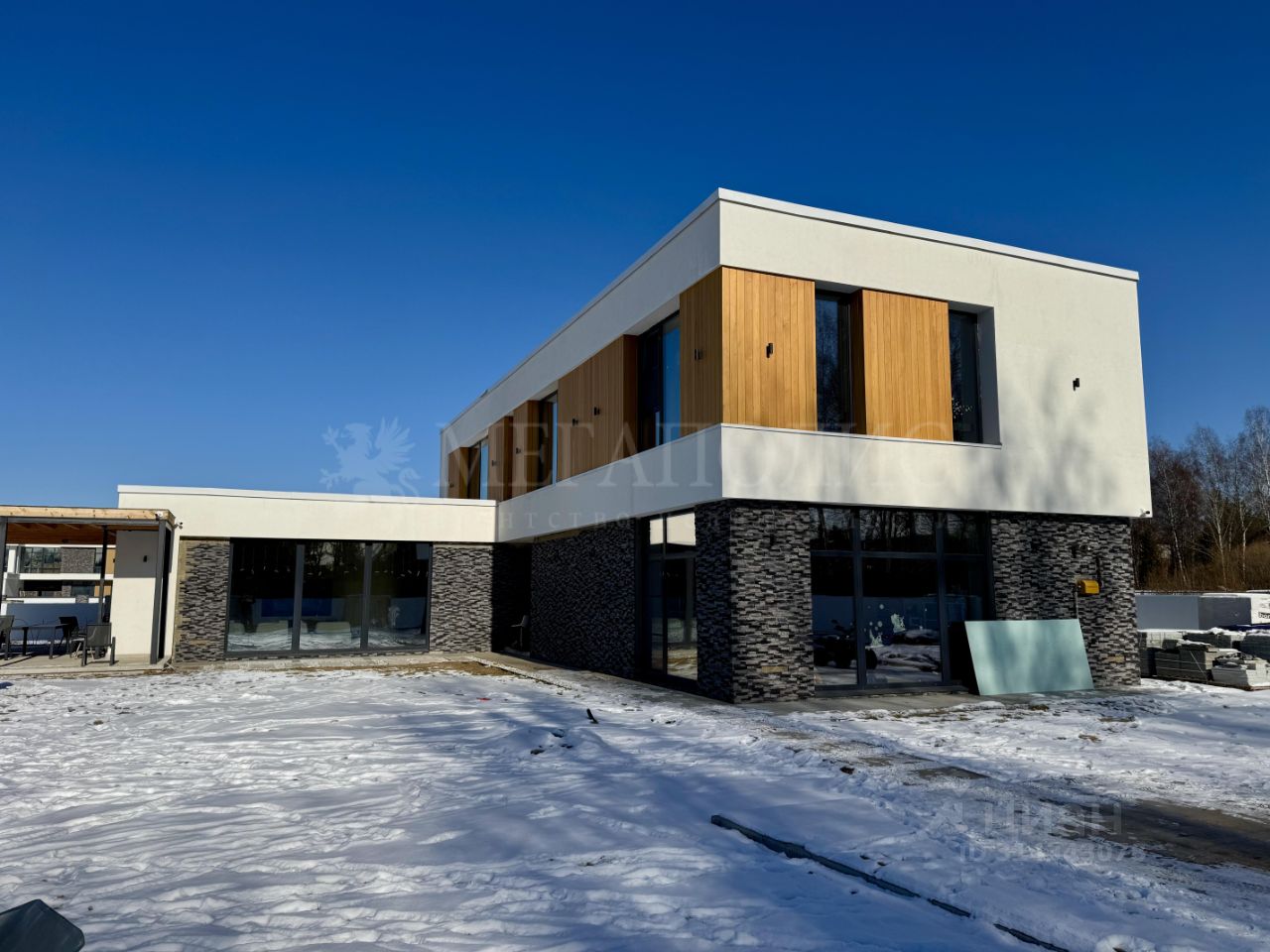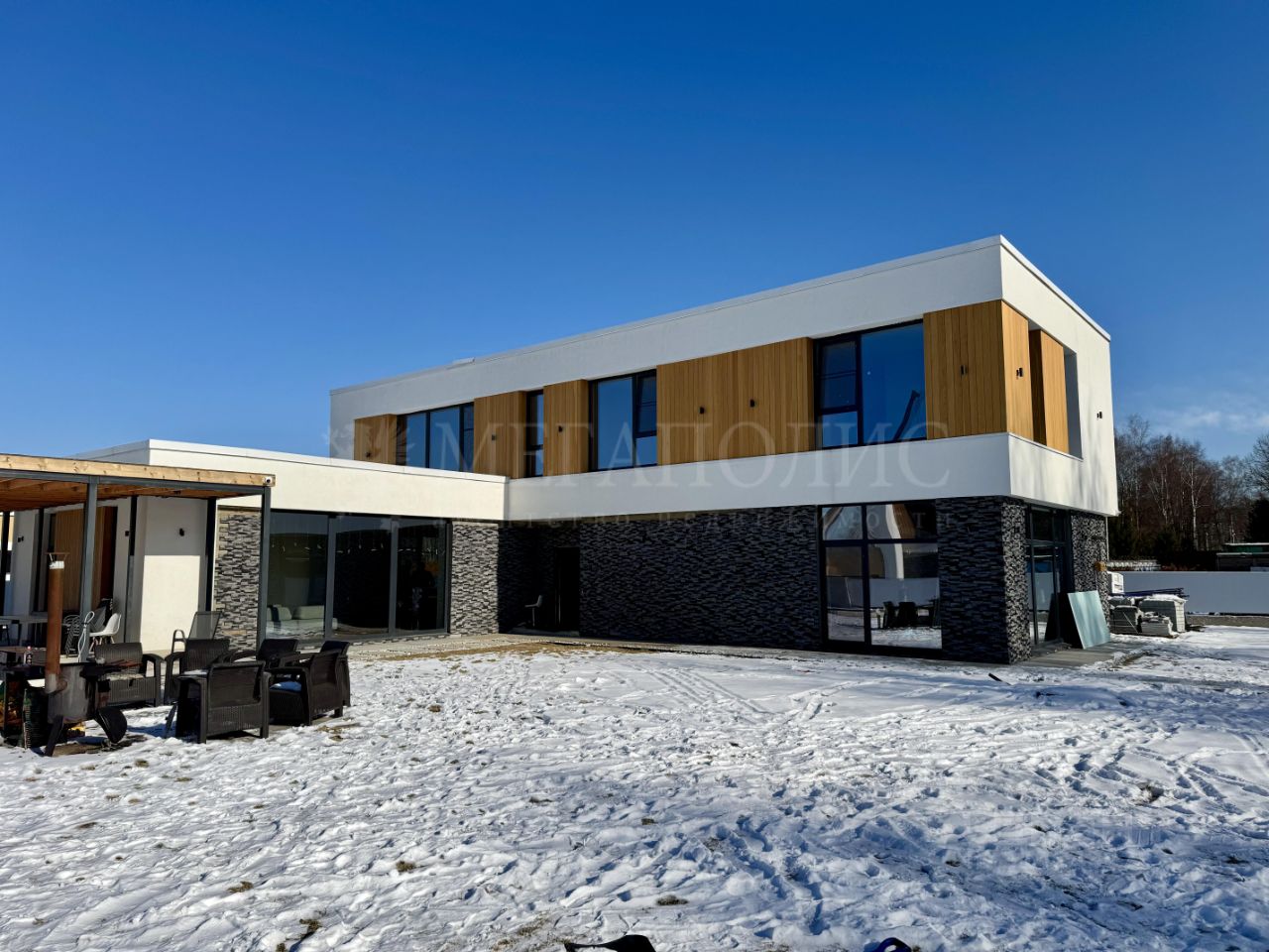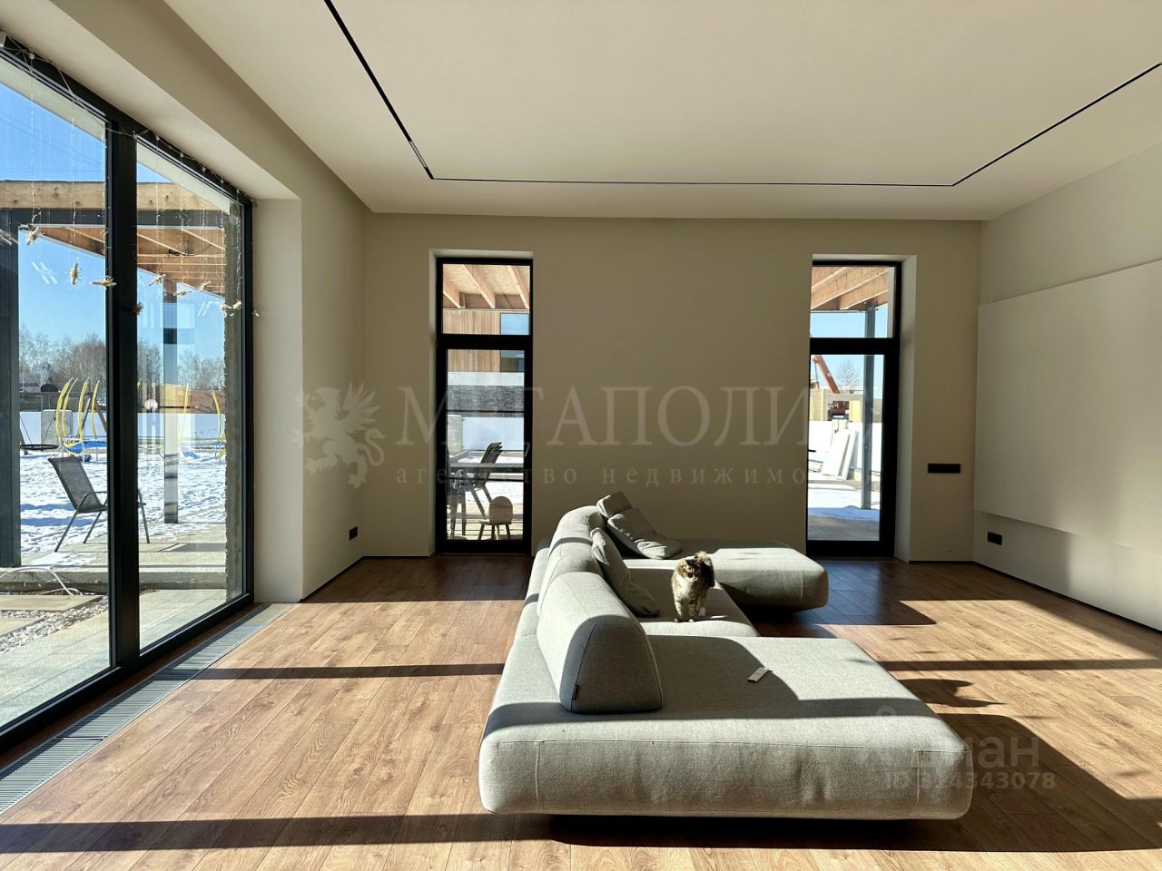 ID: 01263 Коттедж 366,7 м2 с отделкой под ключ с мебелью на участке 17,63 сотки. Дом монолит-кирпич с плоской кровлей и панорамными окнами в пол выполнен по проекту Мальта. Данный проект подойдет семье с большим количеством детей, так как планировка предусматривает 4 спальни на втором и одну на первом этаже. У всех спален предусмотрена гардеробная. Так же на первом этаже есть просторный спорт зал, который легко трансформируется в большую игровую комнату. Отделка выполнена в современном стиле, используются теплые цвета в оформлении интерьера. Участок правильной формы, выровнен, высажен газон с авто поливом, проложены пешеходные дорожки. Так же на участке залиты фундаменты под гараж и под баню. К дому пристроена терраса. Дом расположен в премиальном коттеджном поселке Райт Вилладж. Поселок в едином современном архитектурном стиле. Богатая инфраструктура, охрана, удобный круглогодичный подъезд. Предложение актуально на: 2025-08-01 08:45 MSK