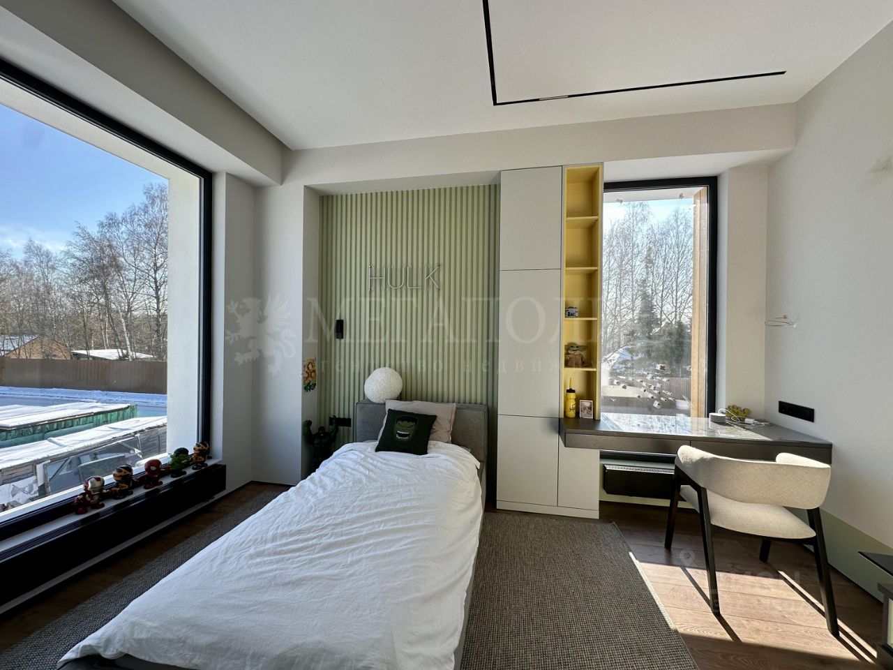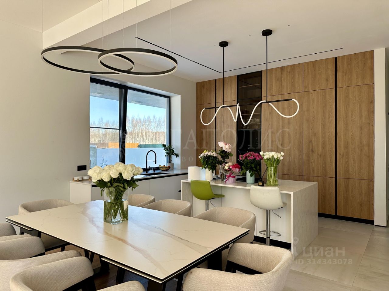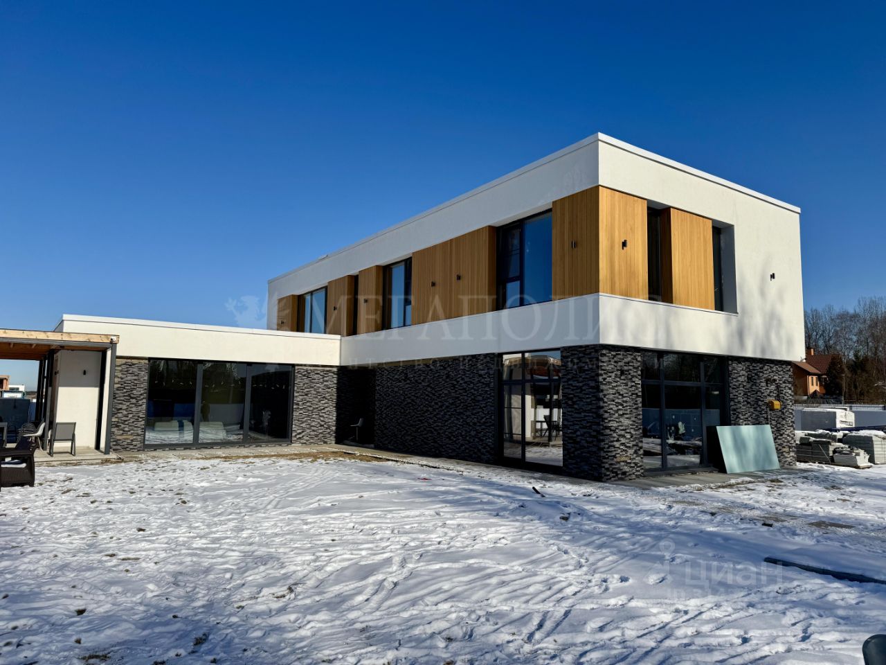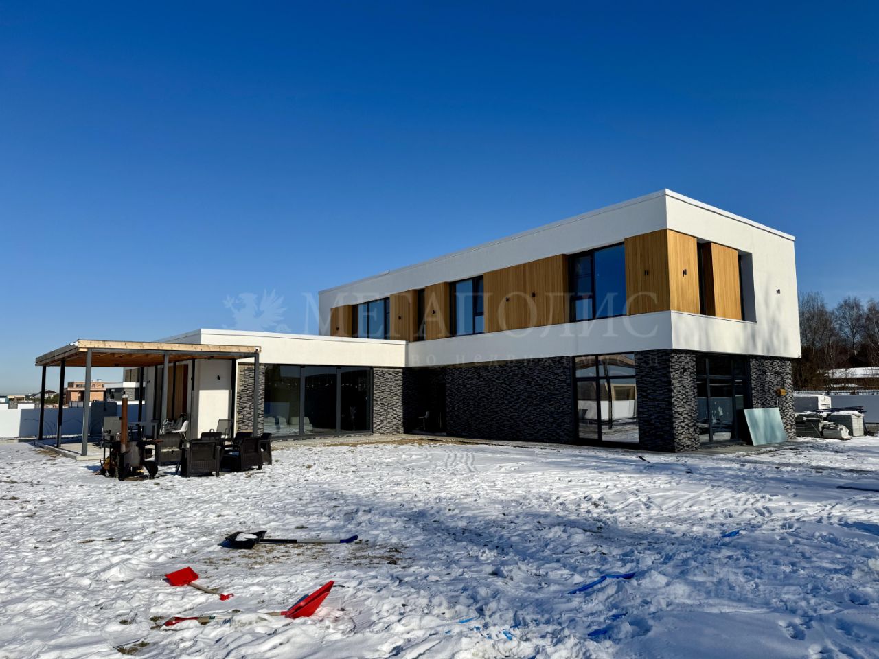 ID: 01263 Коттедж 366,7 м2 с отделкой под ключ с мебелью на участке 17,63 сотки. Дом монолит-кирпич с плоской кровлей и панорамными окнами в пол выполнен по проекту Мальта. Данный проект подойдет семье с большим количеством детей, так как планировка предусматривает 4 спальни на втором и одну на первом этаже. У всех спален предусмотрена гардеробная. Так же на первом этаже есть просторный спорт зал, который легко трансформируется в большую игровую комнату. Отделка выполнена в современном стиле, используются теплые цвета в оформлении интерьера. Участок правильной формы, выровнен, высажен газон с авто поливом, проложены пешеходные дорожки. Так же на участке залиты фундаменты под гараж и под баню. К дому пристроена терраса. Дом расположен в премиальном коттеджном поселке Райт Вилладж. Поселок в едином современном архитектурном стиле. Богатая инфраструктура, охрана, удобный круглогодичный подъезд. Предложение актуально на: 2025-08-01 08:45 MSK
