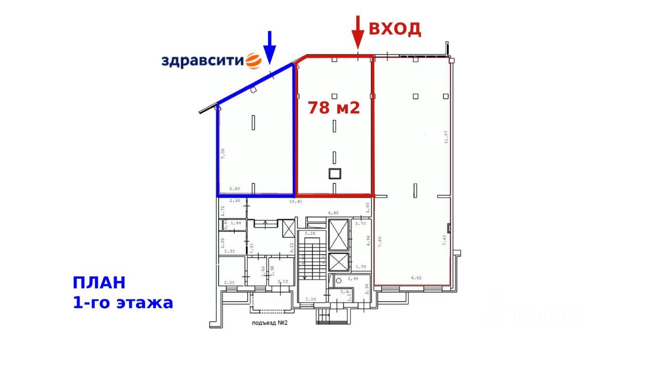 В соседних помещениях расположены аптека ''Здравсити'' и продуктовый супермаркет ''ДИКСИ'' .