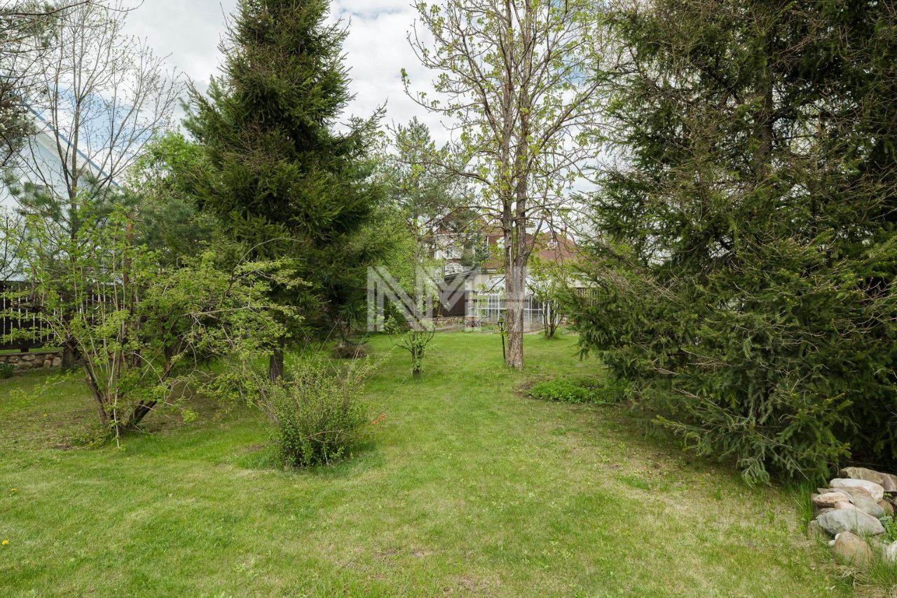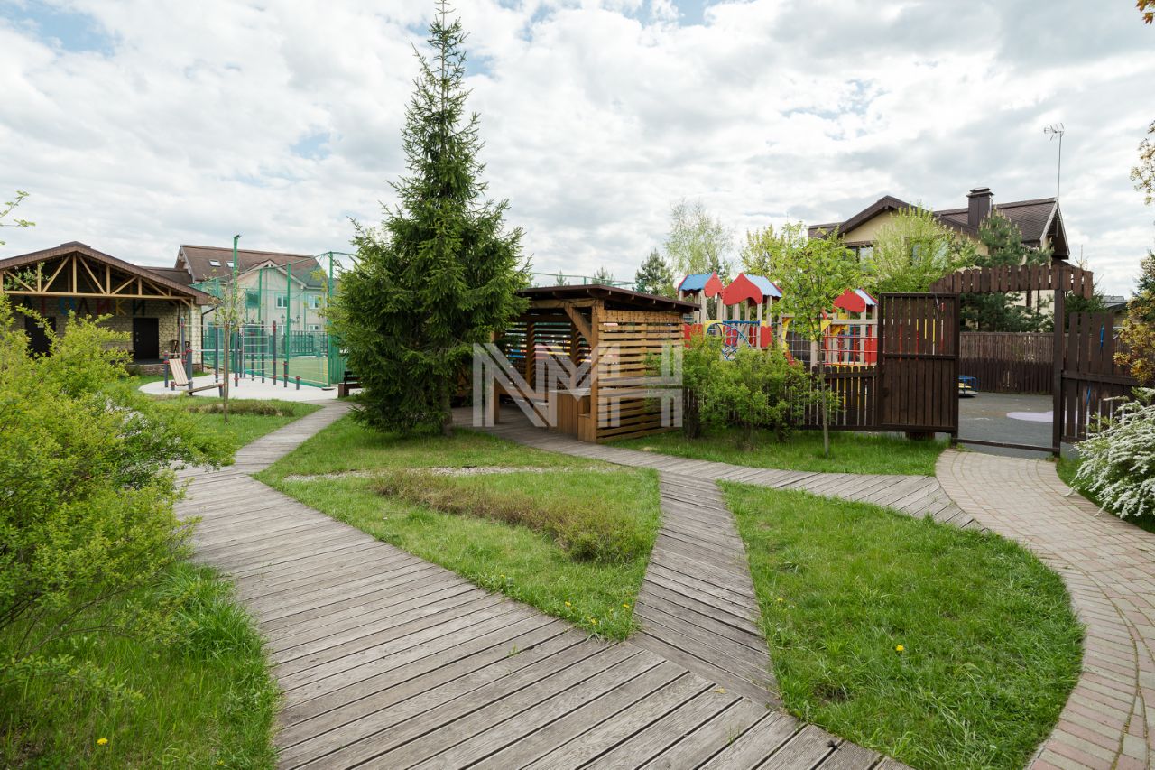 25 соток, ровный, правильной формы, с ландшафтным дизайном, высажен газон, взрослые садовые, лесные и хвойные деревья и кустарники. По периметру сделан забор на бетонном основании, автоматические ворота. На участке зона барбекю, уличный бассейн, спортивная и детская площадка. Дорожки и парковка на 6 автомобилей выложены брусчаткой, выполнено уличное освещение, сделан автополив.