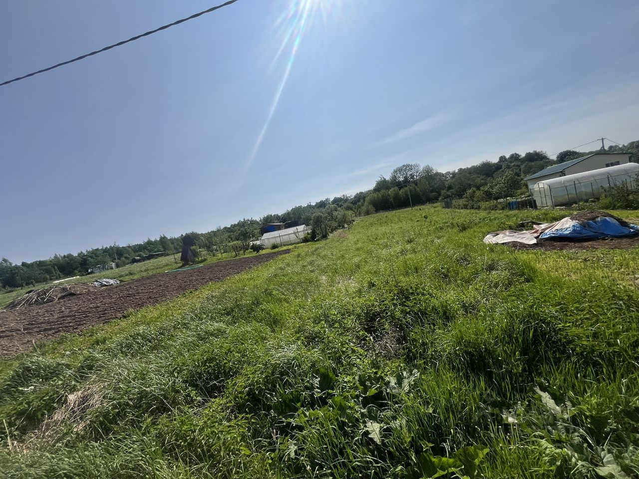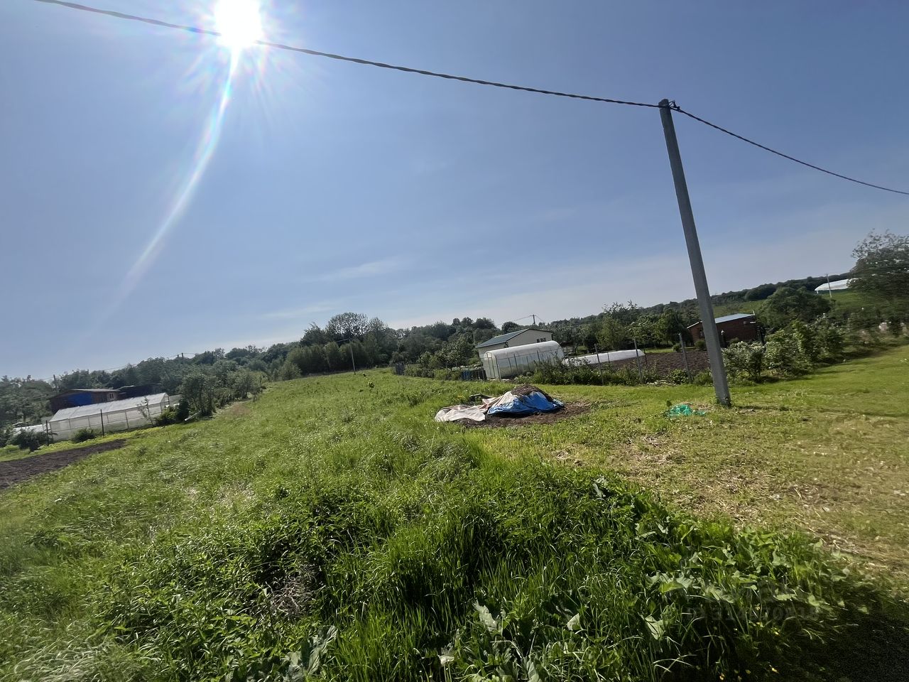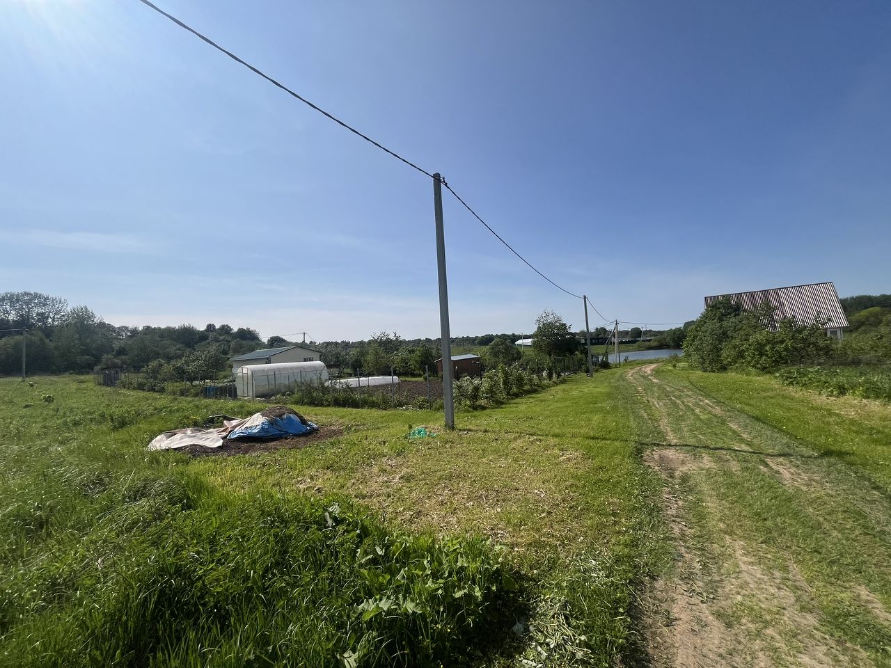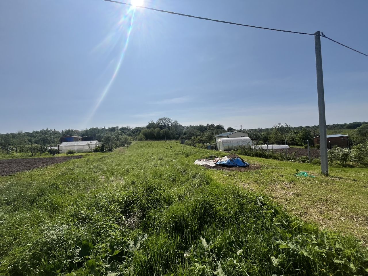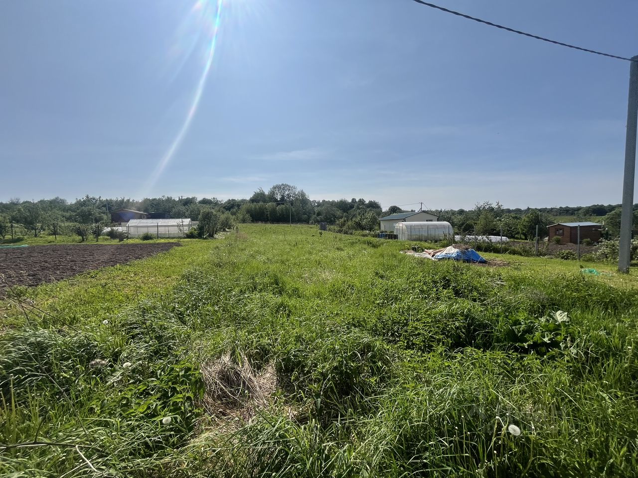 участок ровный, прямоугольной формы, по границе электричество (можно подключаться)