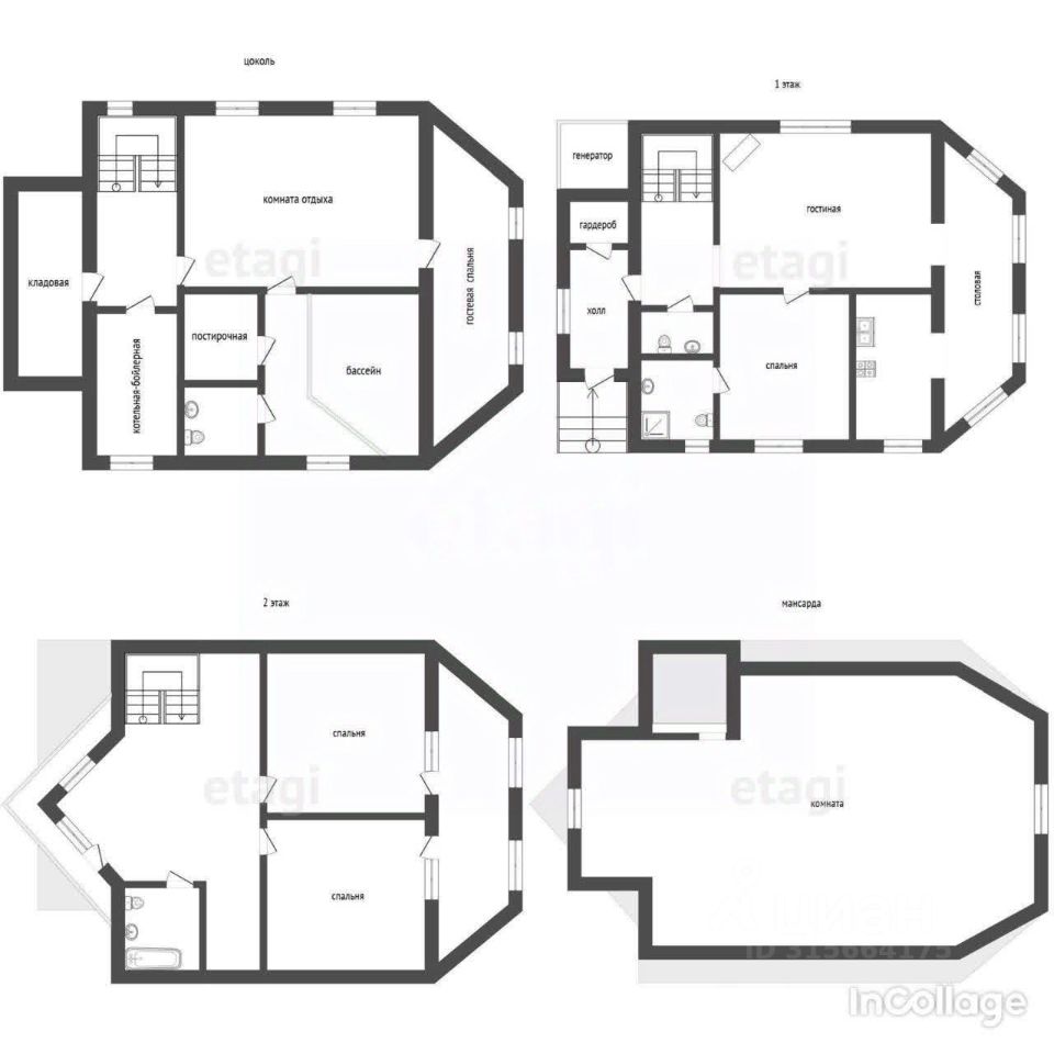 Описание основного дома: - Коттедж 725 кв. м - 4 этажa , материал кирпич 65 см - отопление газовое (AОГB) - все коммуникации центральные (в т. ч. канализация городская) - собственная глубинная скважина - оптико-волоконный интернет - теплые полы - электричество 22 кВт. - видеоконтроль, охрана. ПЛАНИРОВКА - поэтажные планы прилагаются к объявлению