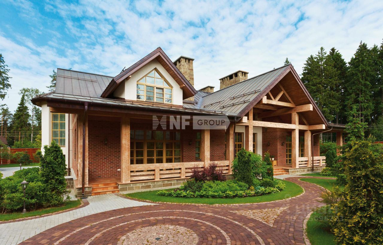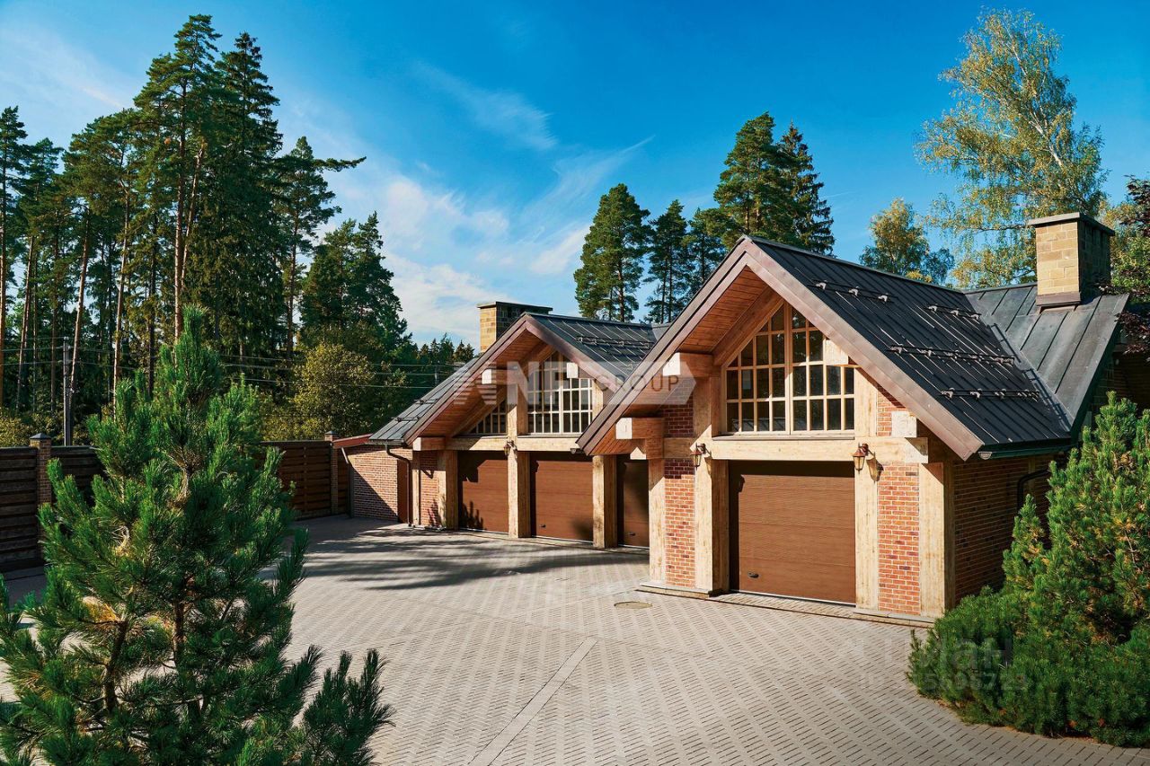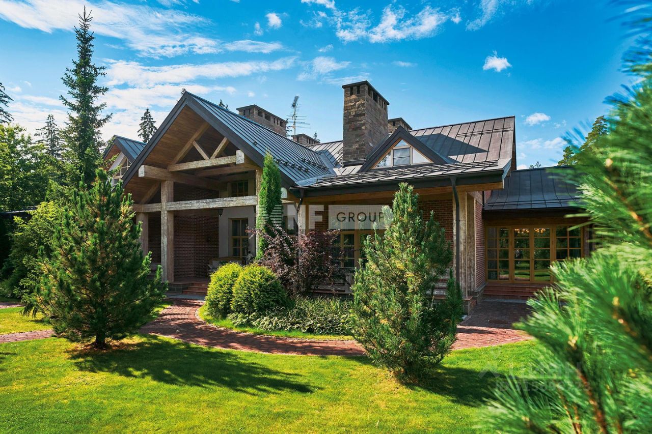 Расположенная на просторном участке 50 соток, загородная резиденция объединяет 4 архитектурных объекта в едином стиле швейцарского шале: трехуровневый жилой дом, двухуровневый SPA-комплекс, дом для персонала и гараж с постом охраны. Широкие силуэты крыш с мощной системой стропил из хвойных пород деревьев органично сливаются с кронами вековых деревьев, создавая гармоничный ансамбль, где кирпичная кладка сочетается с бревнами ручной рубки. Жилой дом площадью 1185 м² наполнен естественным светом благодаря панорамным окнам, второму свету в гостиной и высоким потолкам.