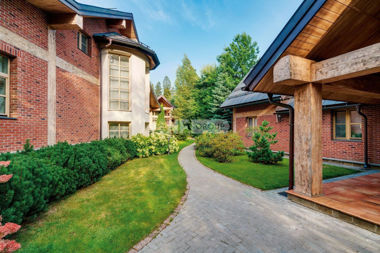 На обширном участке выполнен прекрасный ландшафтный дизайн - настоящий собственный парк, где всегда много солнечного света. Мощёные дорожки извиваются среди лужаек, многочисленных раскидистых деревьев и кустарников. Перед гаражом организована большая площадка для парковки. Инфраструктура дополнена домом для персонала (60 м²), хозяйственным корпусом (192,8 м²) и гаражом с постом охраны (129,3 м²). Все коммуникации централизованы: магистральный газ, электричество, водоснабжение и канализация. SPA-комплекс площадью 625,8 м² включает: - Бассейн с 29 гидромассажными и 12 аэромассажными форсунками, - Хаммам с мозаичной копией панно ''Древо жизни'' Густава Климта, - 5-местную ванну джакузи Avalo 275.