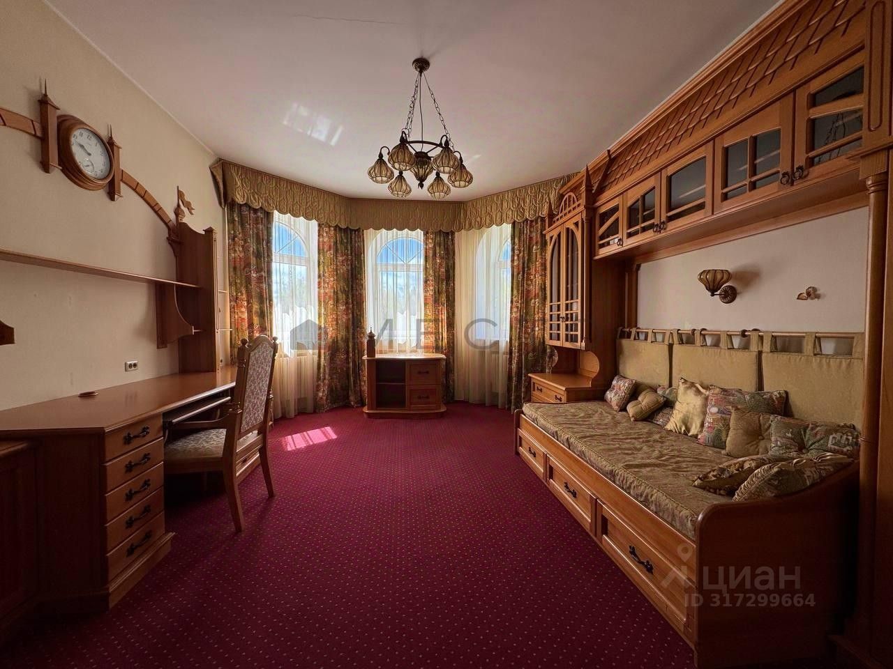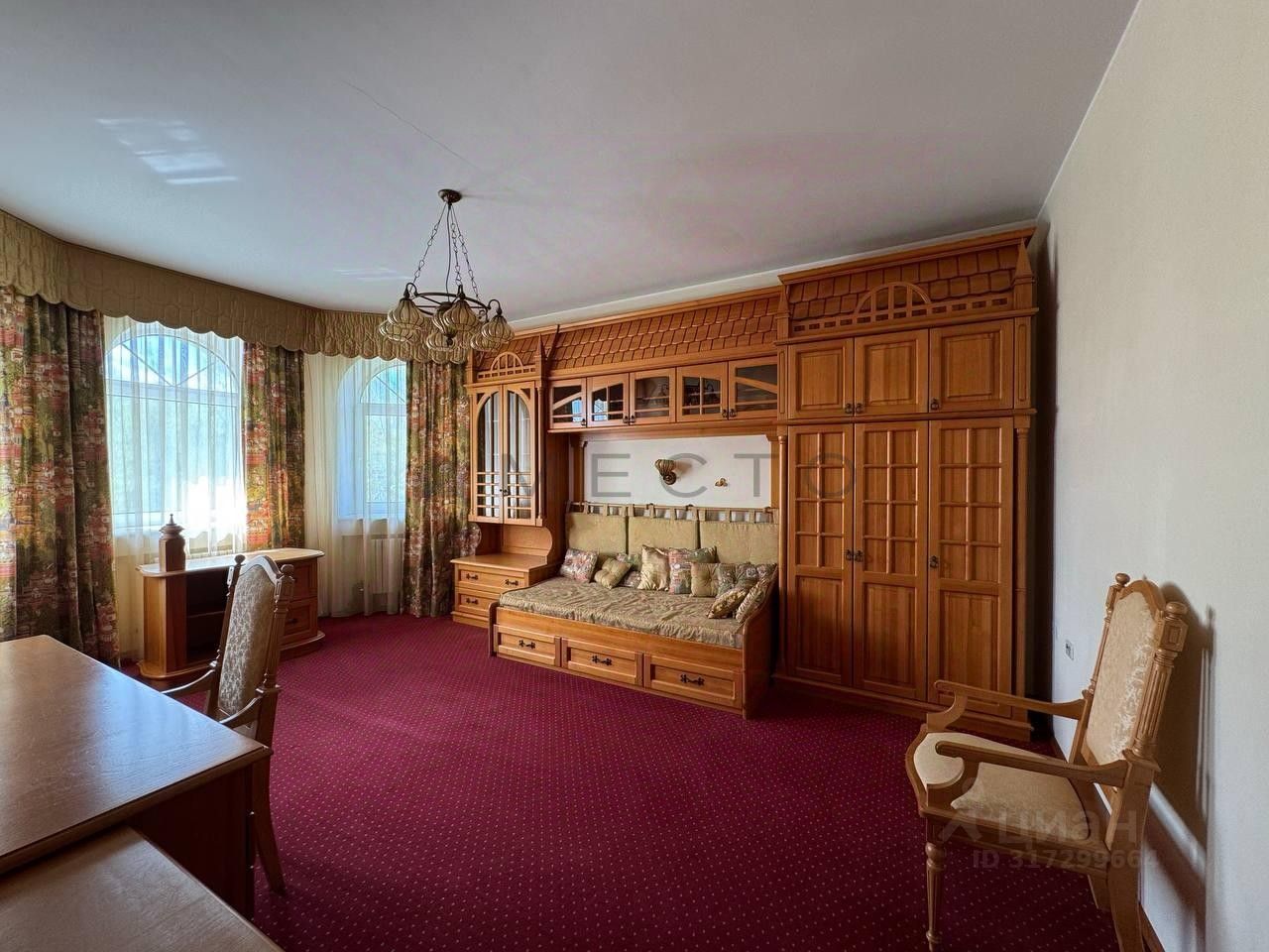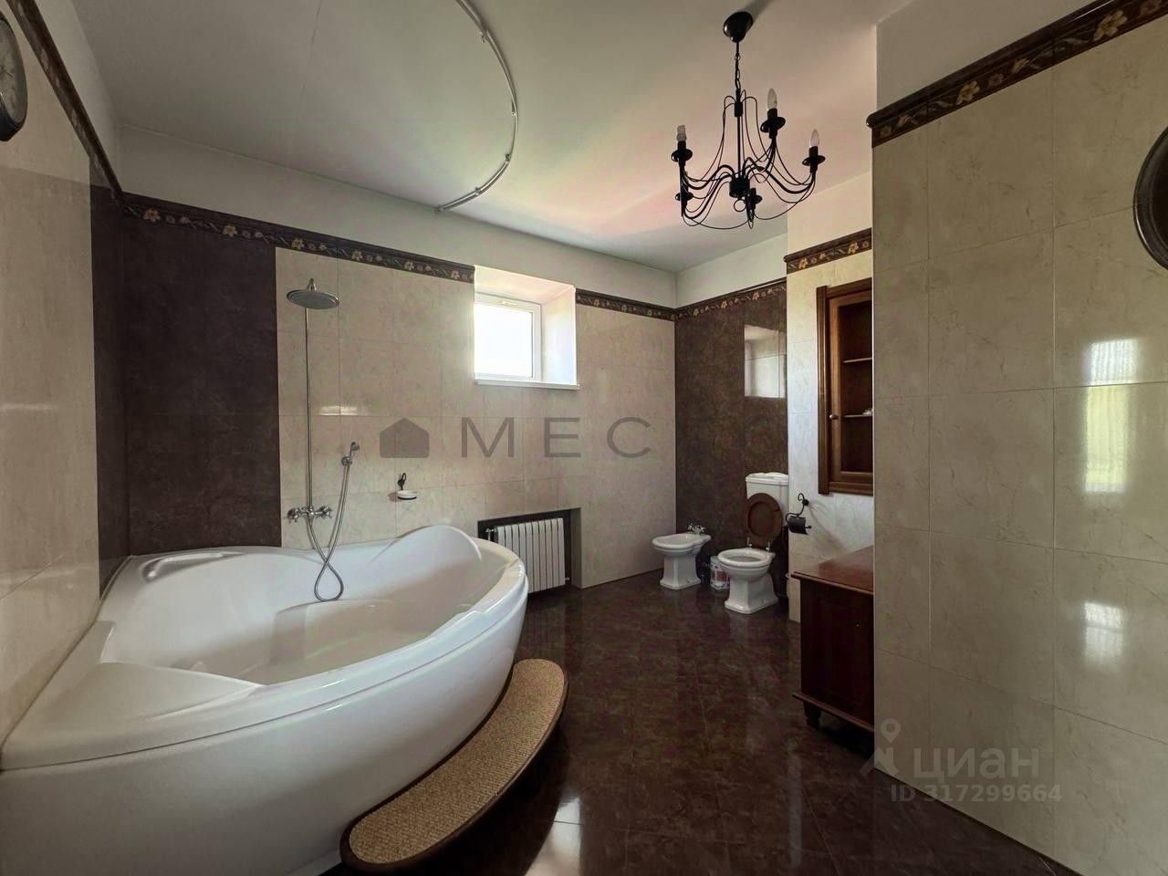 Большинство мебели выполнено по индивидуальному проекту из массива ценных пород дерева. Инженерное оборудование: испанский газовый котел на 100 кВт, аварийный котел на 50 кВт, бойлер на 500 литров.