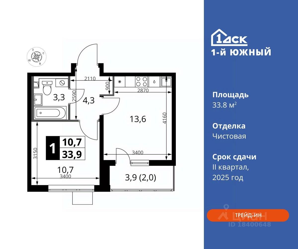 Особенности: - Квартира доступна к покупке в Trade-In. - Линейная планировка - максимальная функциональность и удобство. - Просторная мягкая зона - комфорт и уют для отдыха всей семьи. - Возможность добавить спальное место - дополнительный комфорт для гостей. - Просторная кухня - место для семейных ужинов и кулинарных экспериментов. - Ограниченное количество квартир на этаже - комфорт и уют без лишней суеты. - Ниша под шкаф - компактное и удобное место для вещей. - Лоджия - уютное место для отдыха и тишины. - Вид из окна: двор - МЦД5 в пешей доступности - Квартал с южным садом - Свои 3 детских сада и 2 большие школы
