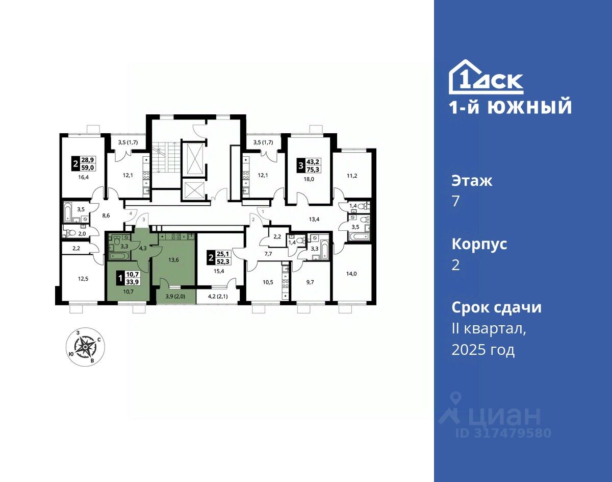 Максимальные скидки при 100% оплате. Trade-in вместо первоначального взноса - выгодно обменяйте вашу квартиру на новую! Корпус сдан! Прямая продажа от застройщика! Жилой Комплекс класса Комфорт плюс. Продаётся 1-к квартира номер 253 в сданном корпусе общей площадью 33.8 кв.м на 7-м этаже 25 этажного дома.