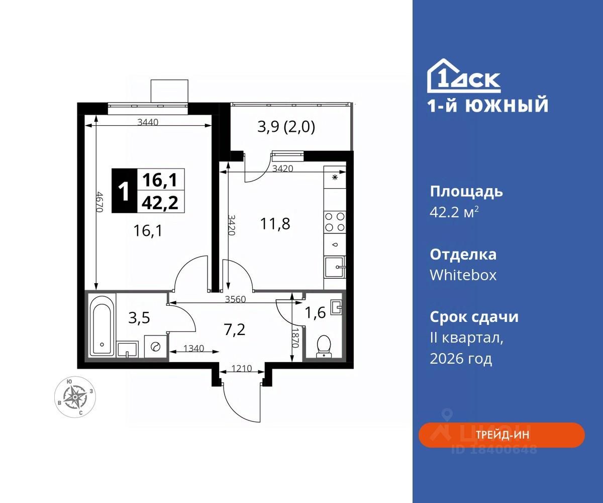 Максимальные скидки при 100% оплате. Trade-in вместо первоначального взноса - выгодно обменяйте вашу квартиру на новую! Прямая продажа от застройщика! Жилой Комплекс класса Комфорт плюс. Продаётся 1-к квартира номер 74 общей площадью 42.2 кв.м на 20-м этаже 25 этажного дома. Отделка Whitebox.