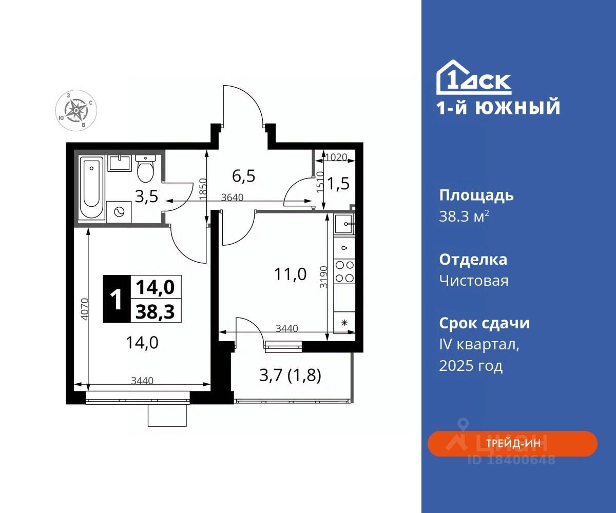 Максимальные скидки при 100% оплате. Trade-in вместо первоначального взноса - выгодно обменяйте вашу квартиру на новую! Прямая продажа от застройщика! Жилой Комплекс класса Комфорт плюс. Продаётся 1-к квартира номер 670 общей площадью 38.3 кв.м на 23-м этаже 24 этажного дома. Чистовая отделка.