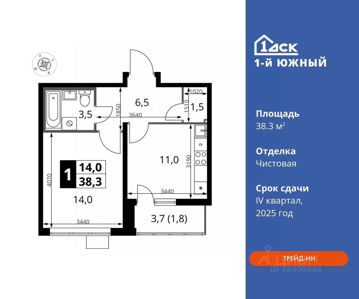 продам 1-к, Первый Южный ЖК, 1.210 089 599 ₽