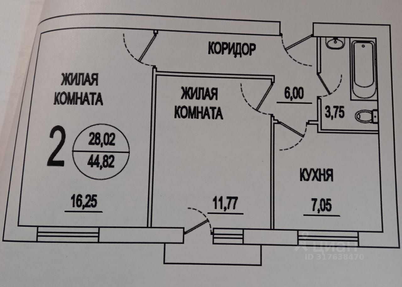 Общая площадь45,3 м2