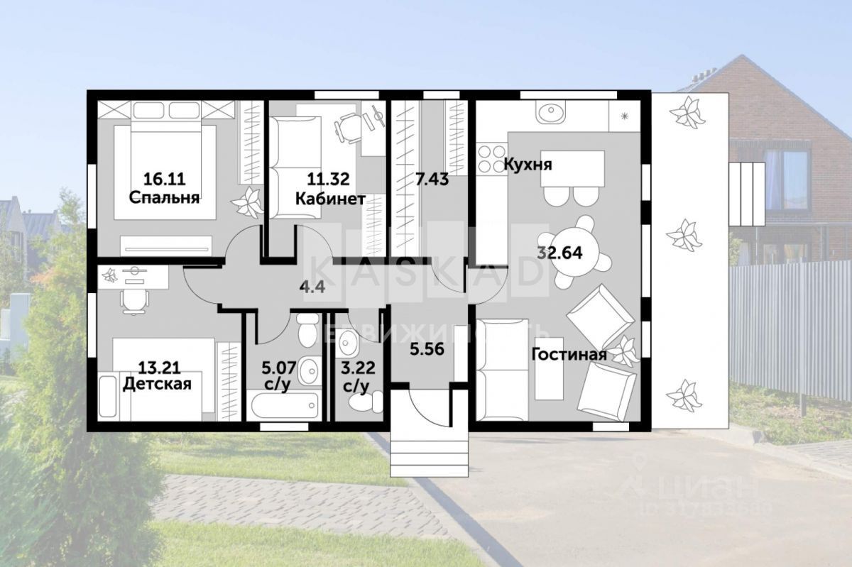 О коттедже: - Площадь: 85 м2, - Участок: 4,4 сот., - Отделка: white box, Планировка: 2 спальни, кабинет, гардеробная комната, 2 с/у, просторная кухня-гостиная, - Коммуникации: электричество, водопровод, канализация, газ, оптоволокно, - Материалы: строительные материалы бизнес-класса, кирпич ручной формовки и клик-фальцевая кровля. Возможность выбора дома, построенного из кирпича или по более современной австрийской prefab-каркасной технологии.