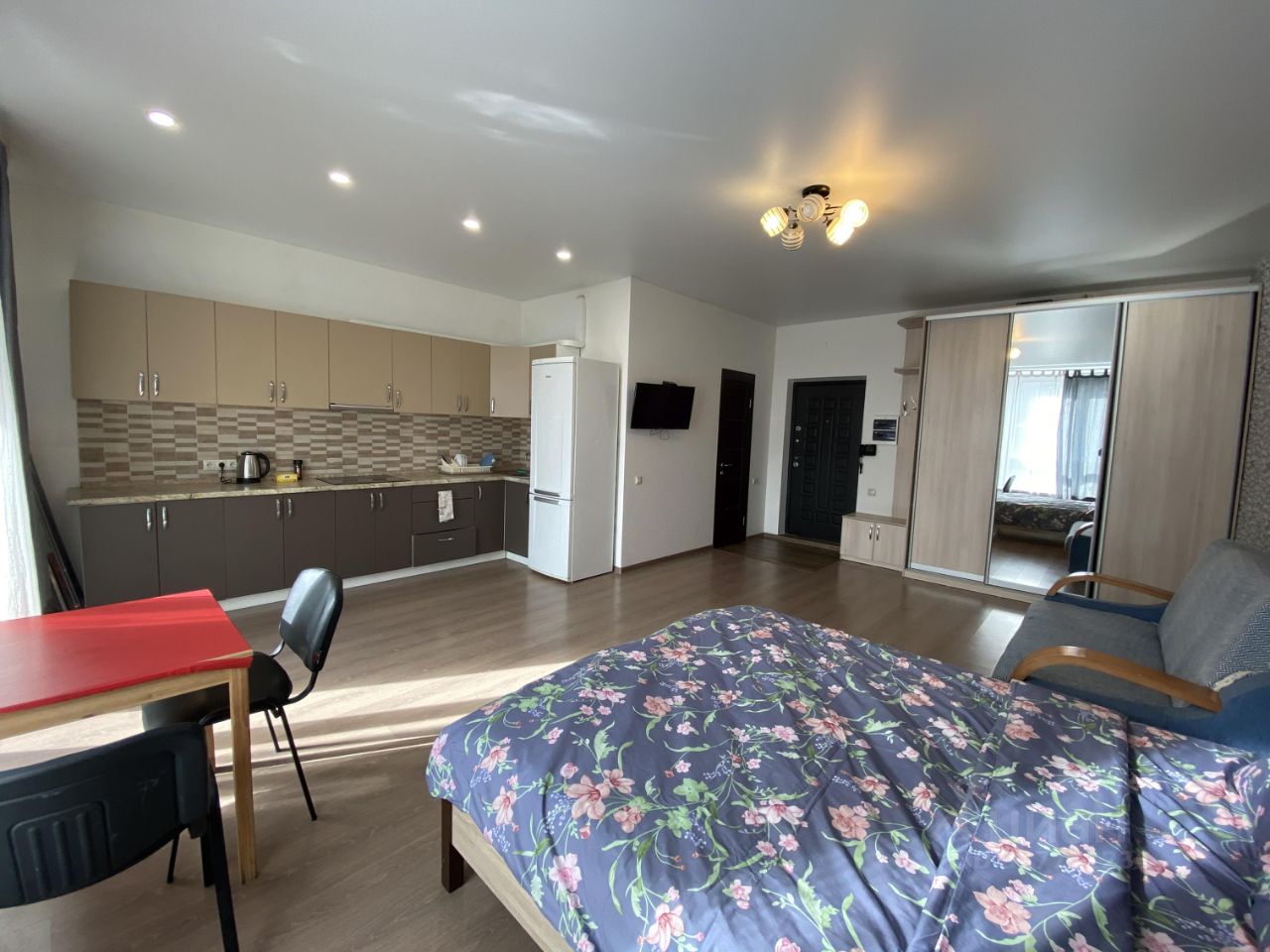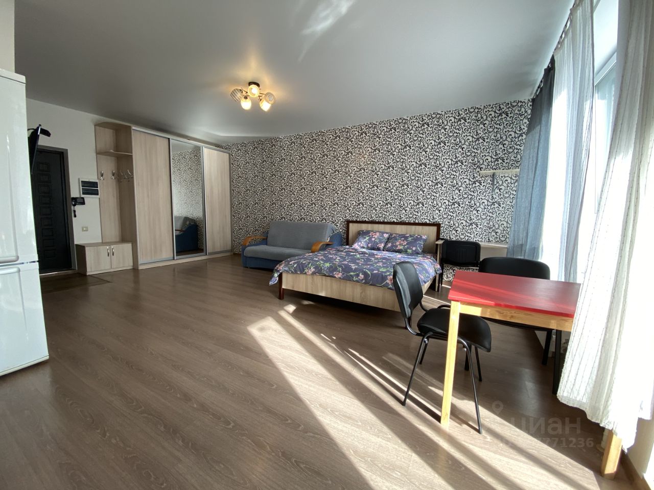 Площадь квартиры и окна позволяют переделать ее из студии в однокомнатную квартиру. Почти вся мебель и техника что на фото остаются. Заезжай и живи. Функциональная планировка, каждый квадратный метр полезной площади.