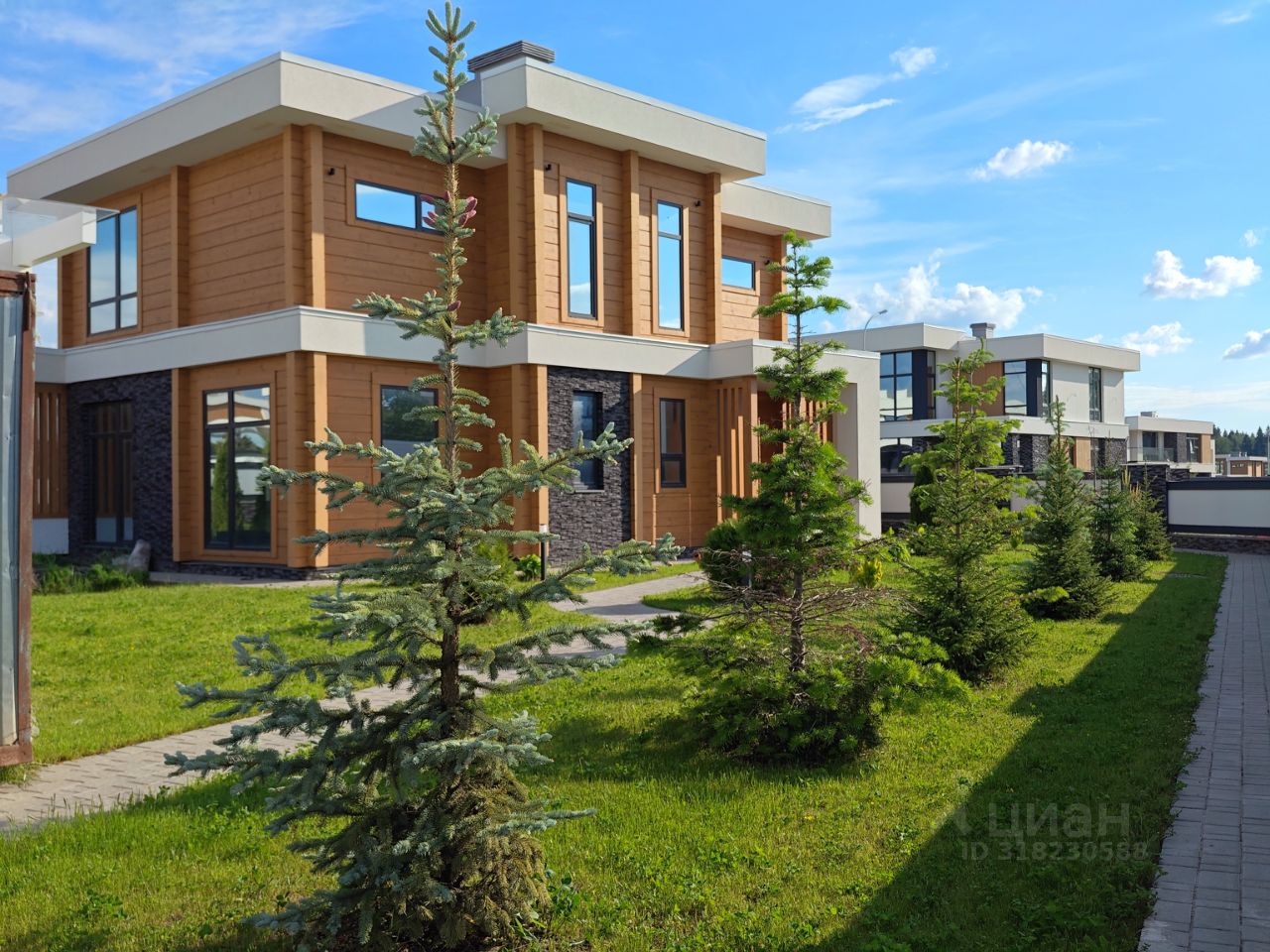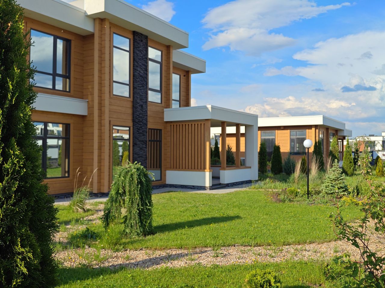 .В продаже НОВЫЙ жилой комплекс из 3-х зданий: - Основной дом- 202.5 кв.м, -Гостевой дом- 89 кв.м., - Гараж с хоз.блоком и котельной- 97.7 кв.м., а также беседка с зоной барбекю. Участок 21 сотка, полностью благоустроен. Проведены работы по обустройству участка по ландшафтному проекту: - обустройство дорожек и въездной группы, высадка растений и деревьев (более 100 сортов)- все растения прошли адаптацию по климату! Проведены все инженерные коммуникации: - газоснабжение, - электроснабжение 21 кВт, - водоснабжение с системой очистки и умягчения воды, -архитектурное освещение дома и участка по проекту, -оборудована дренажная и ливневая система водоотвода, а также система автополива. 1.Основной жилой дом 202.5 кв.