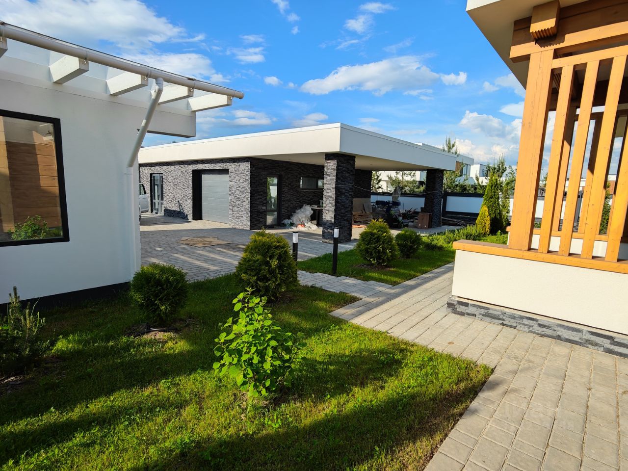 .В продаже НОВЫЙ жилой комплекс из 3-х зданий: - Основной дом- 202.5 кв.м, -Гостевой дом- 89 кв.м., - Гараж с хоз.блоком и котельной- 97.7 кв.м., а также беседка с зоной барбекю. Участок 21 сотка, полностью благоустроен. Проведены работы по обустройству участка по ландшафтному проекту: - обустройство дорожек и въездной группы, высадка растений и деревьев (более 100 сортов)- все растения прошли адаптацию по климату! Проведены все инженерные коммуникации: - газоснабжение, - электроснабжение 21 кВт, - водоснабжение с системой очистки и умягчения воды, -архитектурное освещение дома и участка по проекту, -оборудована дренажная и ливневая система водоотвода, а также система автополива. 1.Основной жилой дом 202.5 кв.м -материал дома клеёный брус сечение 200*280 -1 этаж: прихожая,, большой санузел, гостиная с отдельной зоной отдыха и местом под установку камина, кухня-столовая с выходом в сад, веранда, первый этаж решен в едином пространстве, -2 этаж: 3 спальни, одна с возможностью обустройства террасы, гардеробная, большой санузел, постирочная, 2. Гостевой жилой дом: 89 кв.м. -материал дома клеёный брус 200*280 +1 этаж: прихожая, больше многофункциональное хоз. помещение, кухня- гостиная с панорамными окнами и выходом в сад, веранда, спальня, гардеробная, санузел, 3. Теплый Гараж со встроенным хозяйственным помещением, и котельной: 97.7 кв.м.материал стен, газосиликатный блок 380 мм + открытый навес на 1 а/м, Котельная, .резервный генератор на 15 кВт Инженерные системы зданий полностью готовы к эксплуатации! Весь комплекс запущен в эксплуатацию, отапливается, полностью функционирует. Отделочные работы находятся на завершающей чистовой стадии и будут закончены до момента передачи новому хозяину. Готовность 95 % Более подробно по телефону или при осмотре. КП ''РАЙТ ВИЛЛАДЖ'' Новый поселок премиум класса на границе Новой Москвы. Богатая внутренняя инфраструктура поселка с обустроенным ландшафтом и архитектурным освещением включает в себя : Многочисленные прогулочные зоны с каскадом прудов, торговый центр, ресторан ''Прерия'', достраивается здание детского сада, запланировано здание бизнес центра, спортивной и общеобразовательной школы, есть каскад прудов дл Удобное расположение и легка транспортная доступность до центра Москвы. Своя управляющая компания с многочисленными услугами необходимыми для обслуживания дома и комфортного проживания: свои сантехники, электрики, садовники, услуги клиринга и химчистки, охрана на въезде, въезд строго по пропускам и патрулирование всей территории поселка мобильными экипажами. Видеонаблюдение всей территории поселка.. Рядом протекает живописная река Десна,