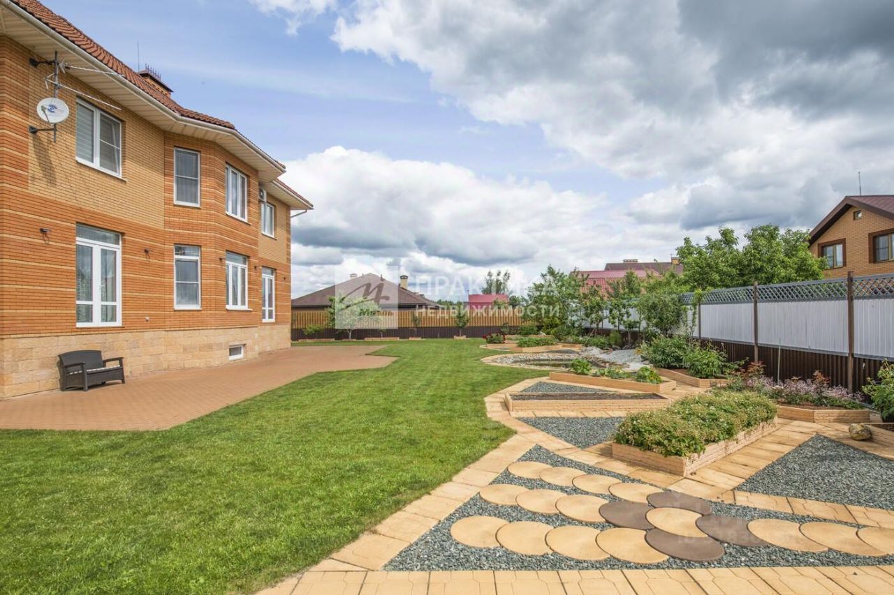 О ДОМЕ Площадь 401,4 кв.м (не включая полностью оборудованный просторный мансардный этаж) 7 жилых комнат На 1 этаже располагается гостиная, кухня- столовая, кабинет, каминная, гостевая спальня, гардеробная, кладовки и совмещенный санузел с душевой. Кухонный гарнитур выполнен из массива, рабочая поверхность искусственный камень. Теплые полы. Отделка полов плитка и паркетная доска . Высота потолка 3 метра. На 2 этаже просторный холл, 3 спальни. В двух комнатах обустроены угловые шкафы , выполняющие функции гардеробной. В мастер-спальне предусмотрен собственный санузел с джакузи (производства США) и гардеробная комната. Также на втором этаже размещен дополнительный санузел с ванной. Полы - паркетная доска. Из холла можно подняться на мансардный этаж по уникальной лестнице, выполненной из массива по технологии ''гусиный шаг''. Мансардный этаж свободной планировки, несколько окон, система хранения по периметру, отдельный санузел. Высота до 4 метров. В цокольном этаже помещение для сауны, комната отдыха, бильярдная, санузел с душевой. В цокольном этаже смонтирована котельная. Также здесь размещено несколько хозяственных помещений для хранения и постирочная. На второй этаж ведет красивая дубовая лестница, на каждой ступени располагается по 2 балясины, что создает не только дополнительную эстетическую привлекательность , но и обеспечивает безопасность.