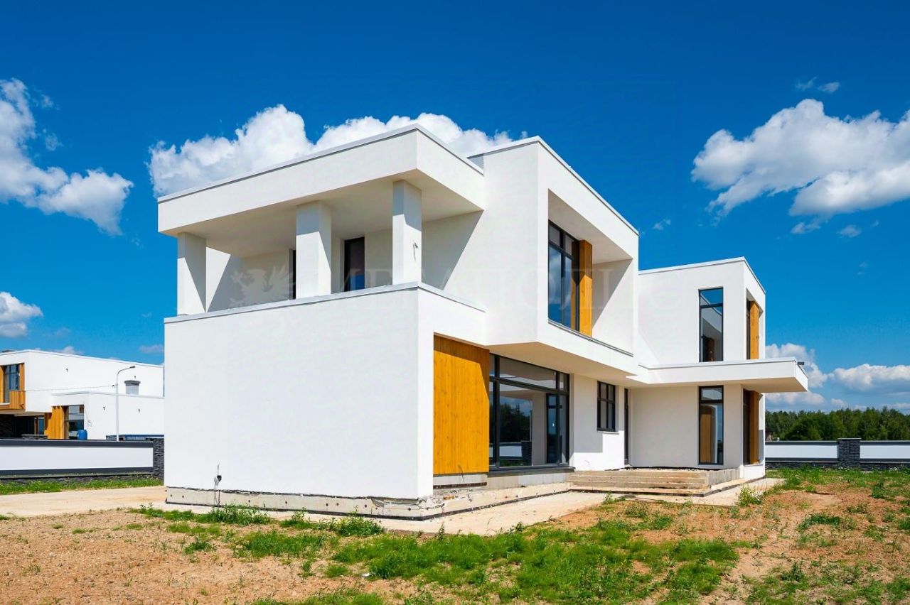 ID: 01243 Дом Московской области, расположенный в коттеджном посёлке Райт Вилладж, находится на Киевском шоссе и представляет собой современный особняк под отделку, построенный из монолита-кирпича. Площадь здания составляет 427 квадратных метров на участке площадью 31,14 сотки. Дом выполнен в современном стиле, что придаёт ему элегантный и стильный вид.