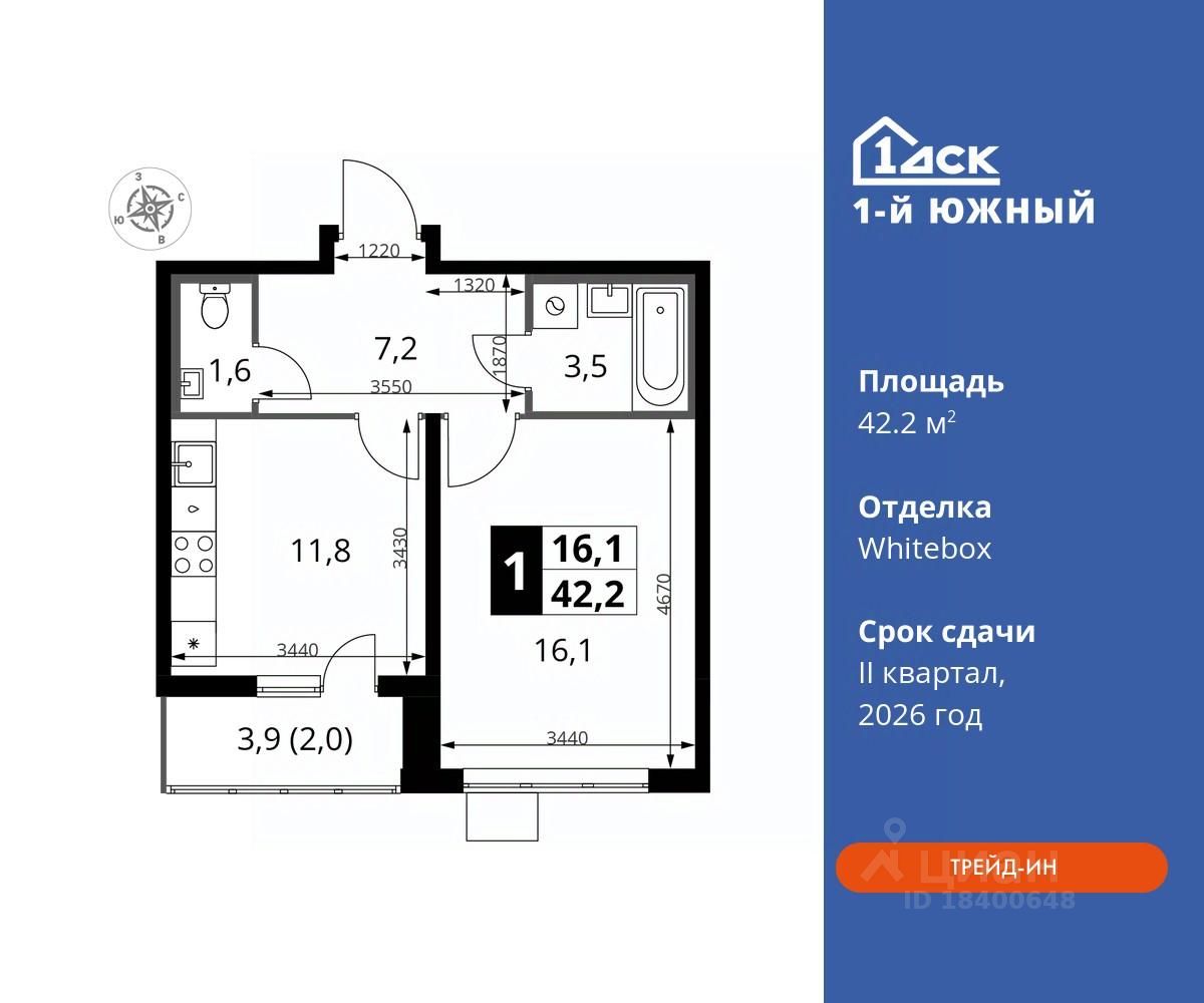 Максимальные скидки при 100% оплате. Trade-in вместо первоначального взноса - выгодно обменяйте вашу квартиру на новую! Прямая продажа от застройщика! Жилой Комплекс класса Комфорт плюс. Продаётся 1-к квартира номер 796 общей площадью 42.2 кв.м на 24-м этаже 24 этажного дома. Отделка Whitebox.