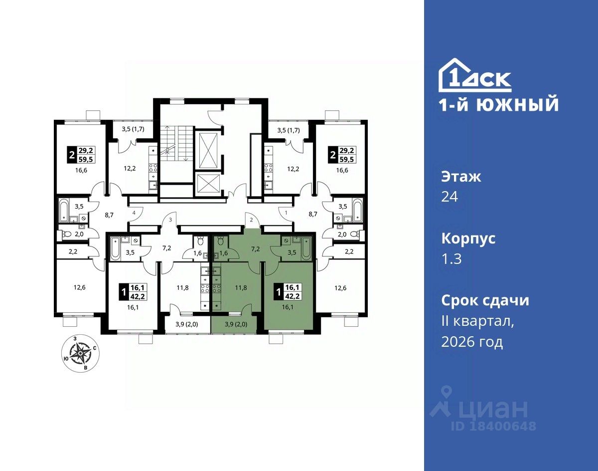 продам 1-к, Первый Южный ЖК, 1.39 383 761 ₽