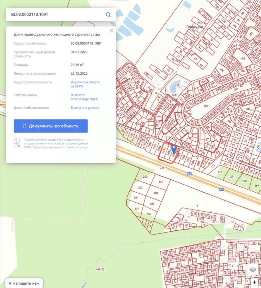 Кадастровый номер 50:08:0060178:1091, участок 173, всего 20.2 соток.